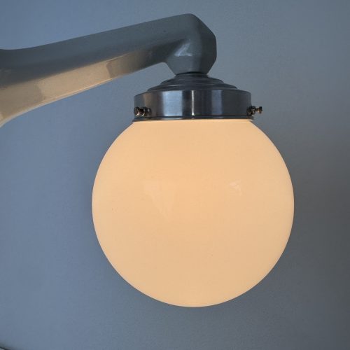 Rare applique de Ferdinand Solère à contrepoids. La lampe tourne à 360° sur son bras coudé. Le bras coulisse pour maintenir l’équilibre. Le réflecteur s’articule également. Tout acier & aluminium. Lampe estampillée.