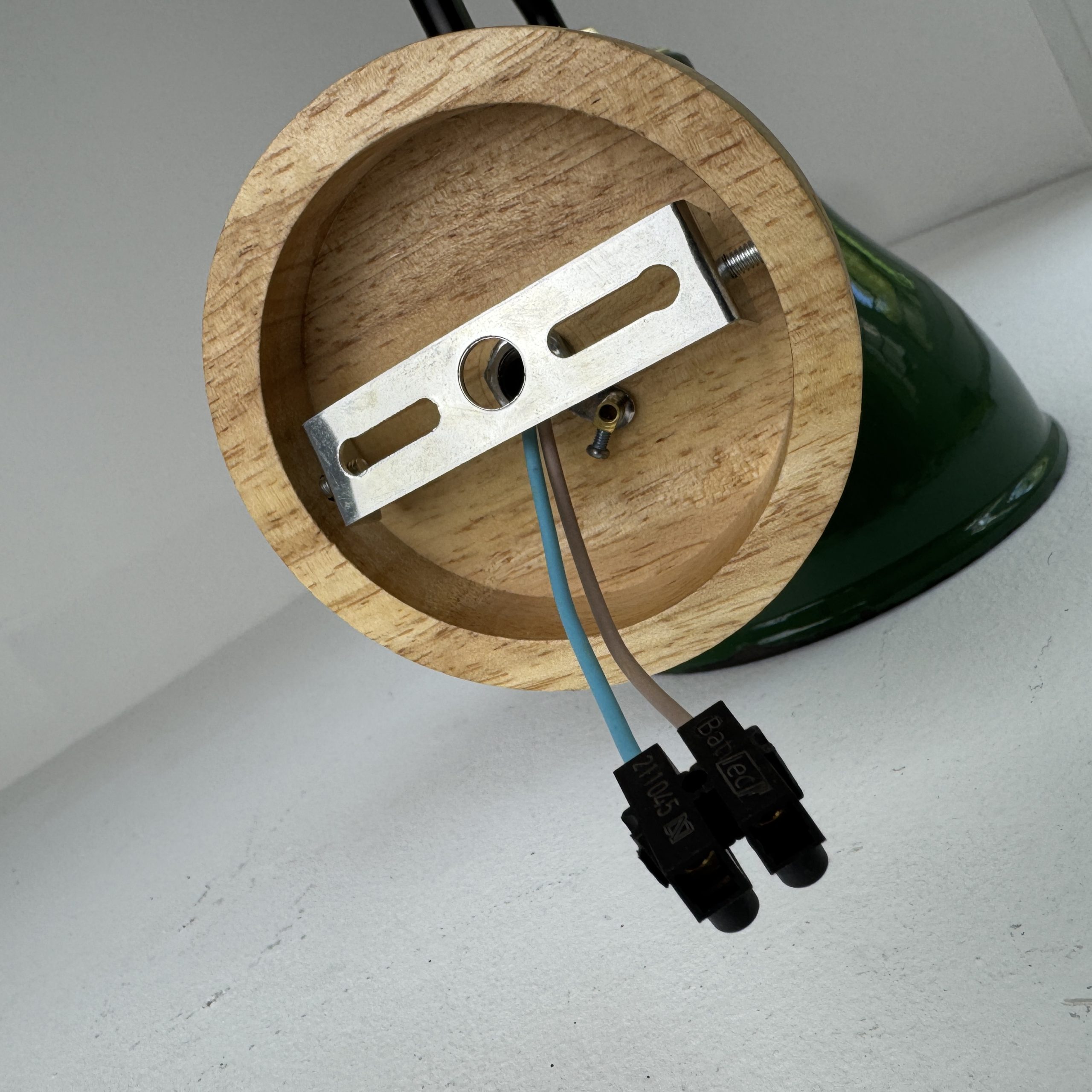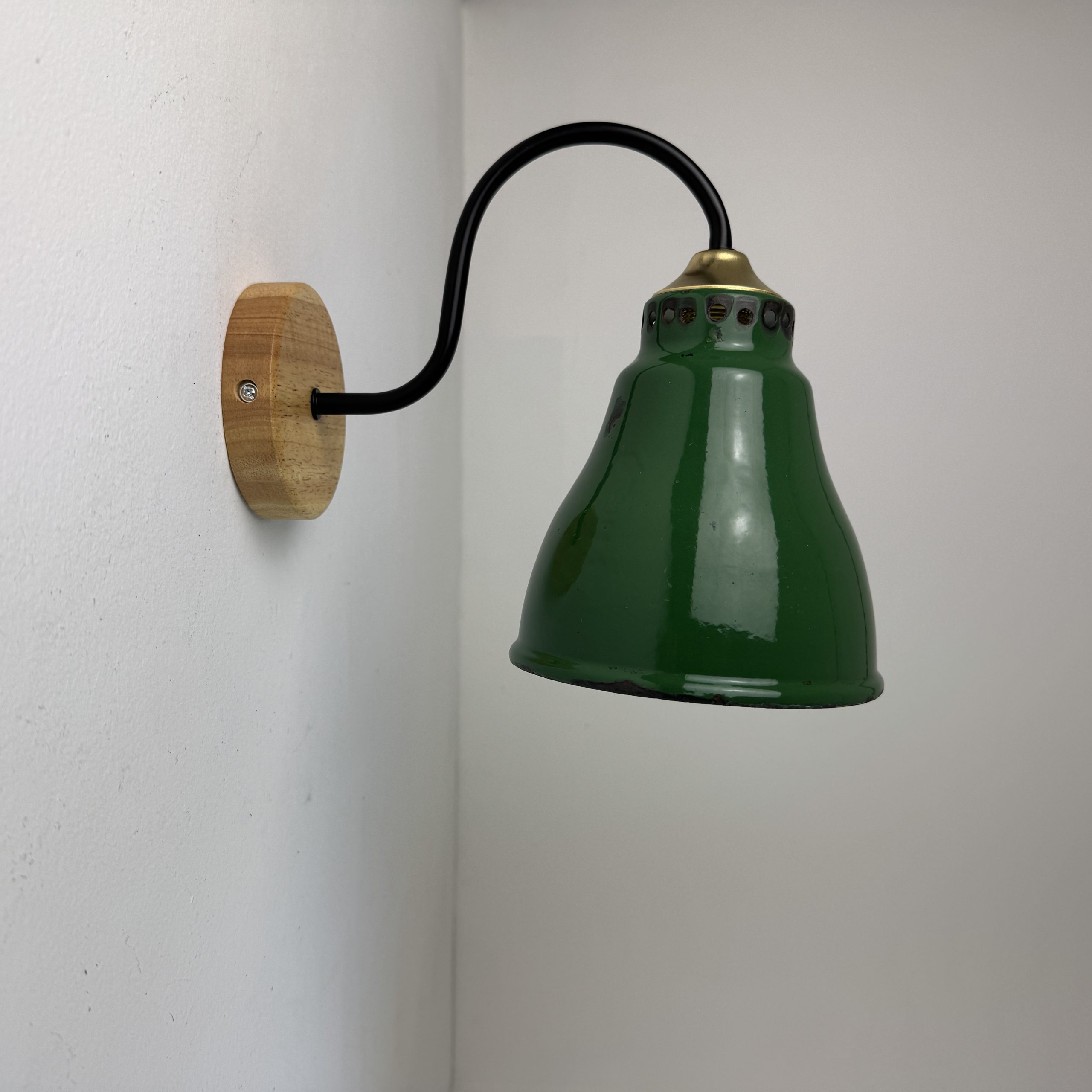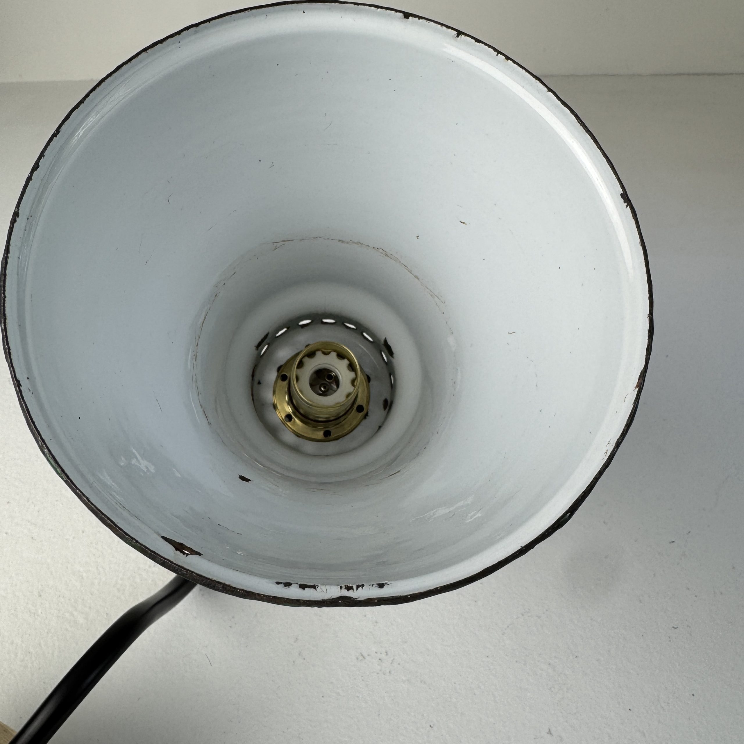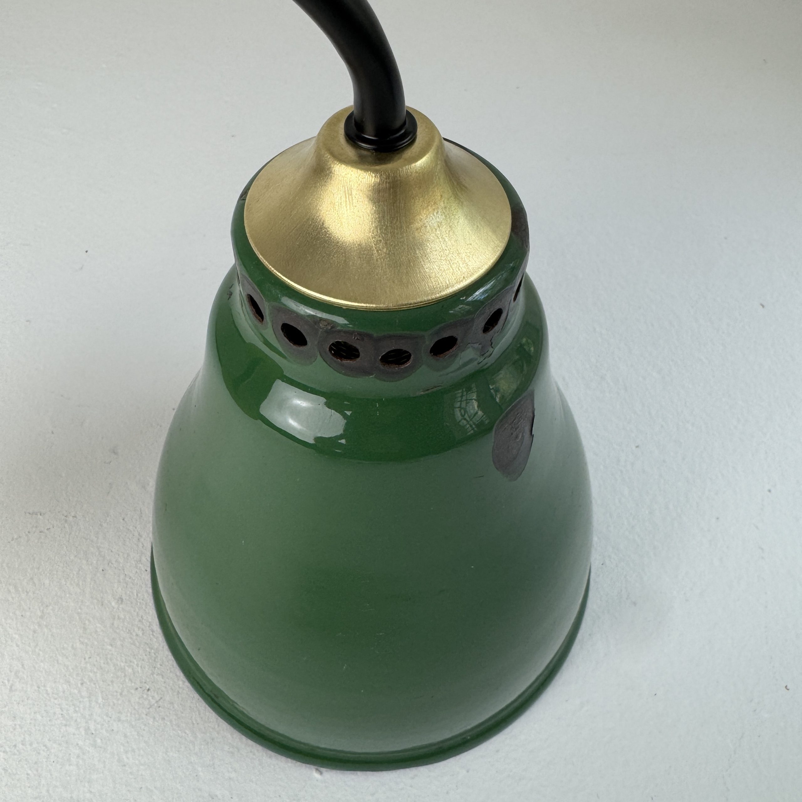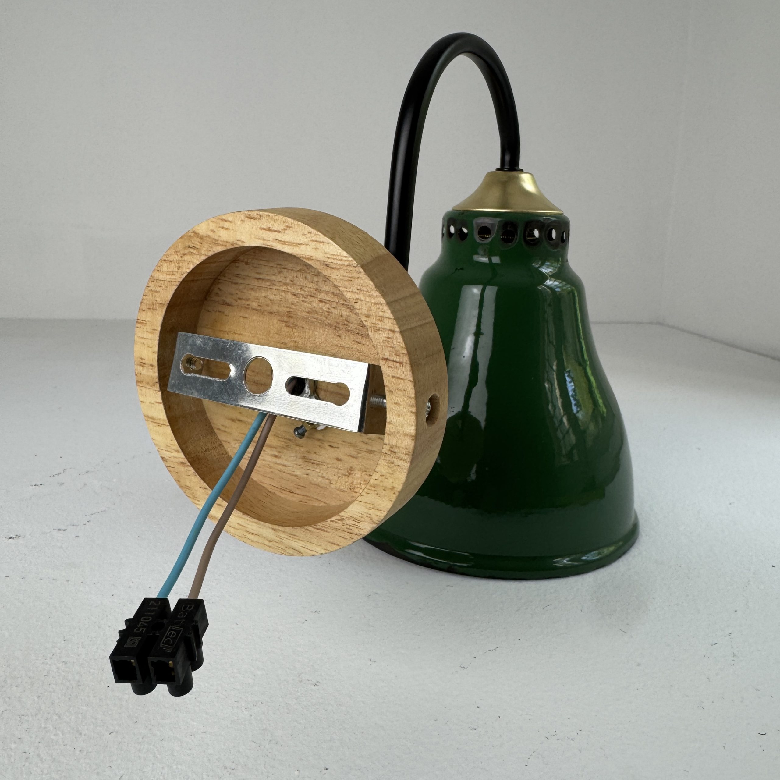 Applique col de cygne en tôle émaillée. Le bras et la base sont neufs. Douille à vis petit culot (ampoule E14)