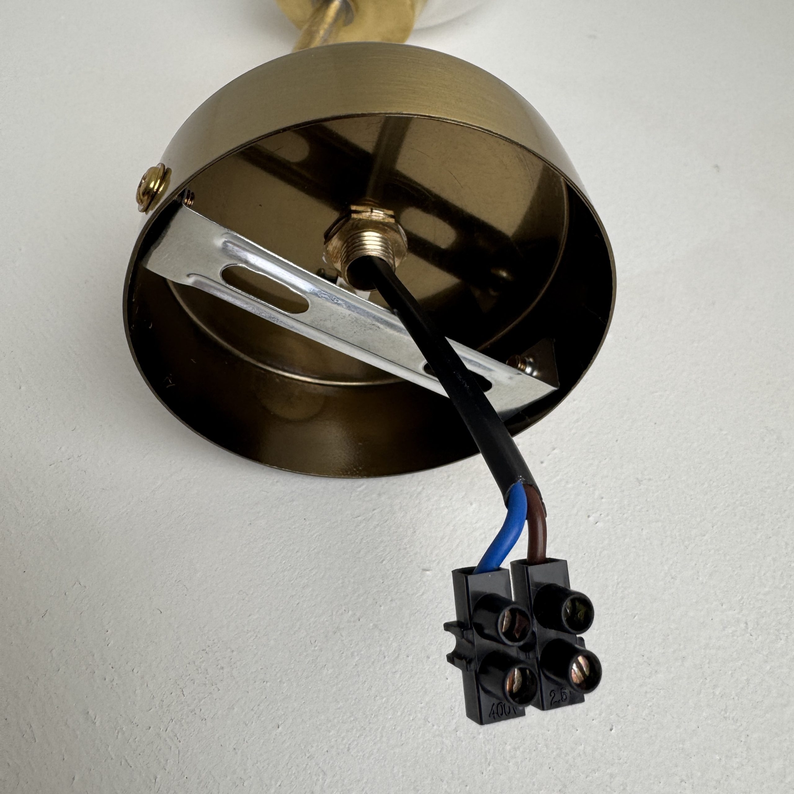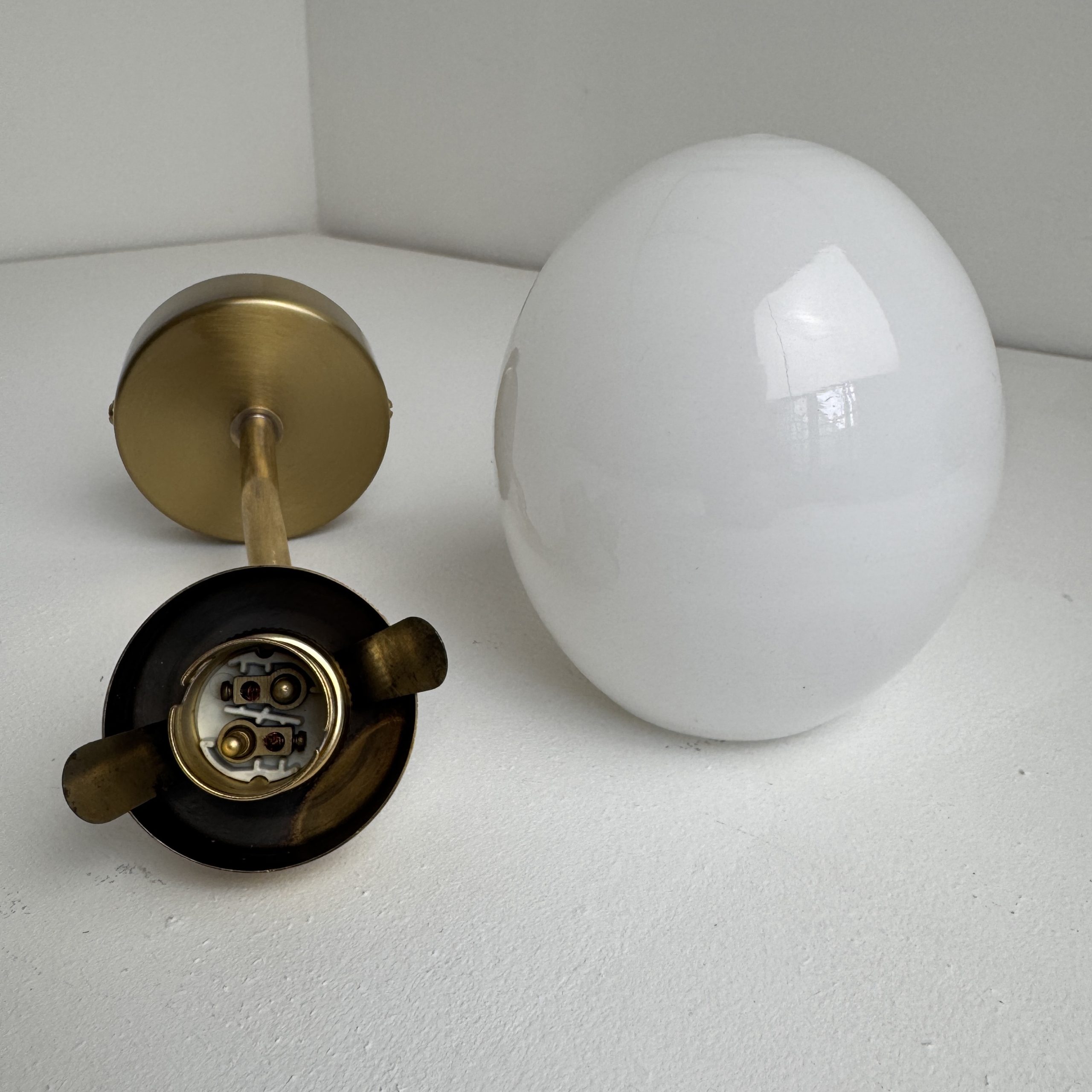 Applique vintage en laiton et opaline. En bel état. La base est neuve.