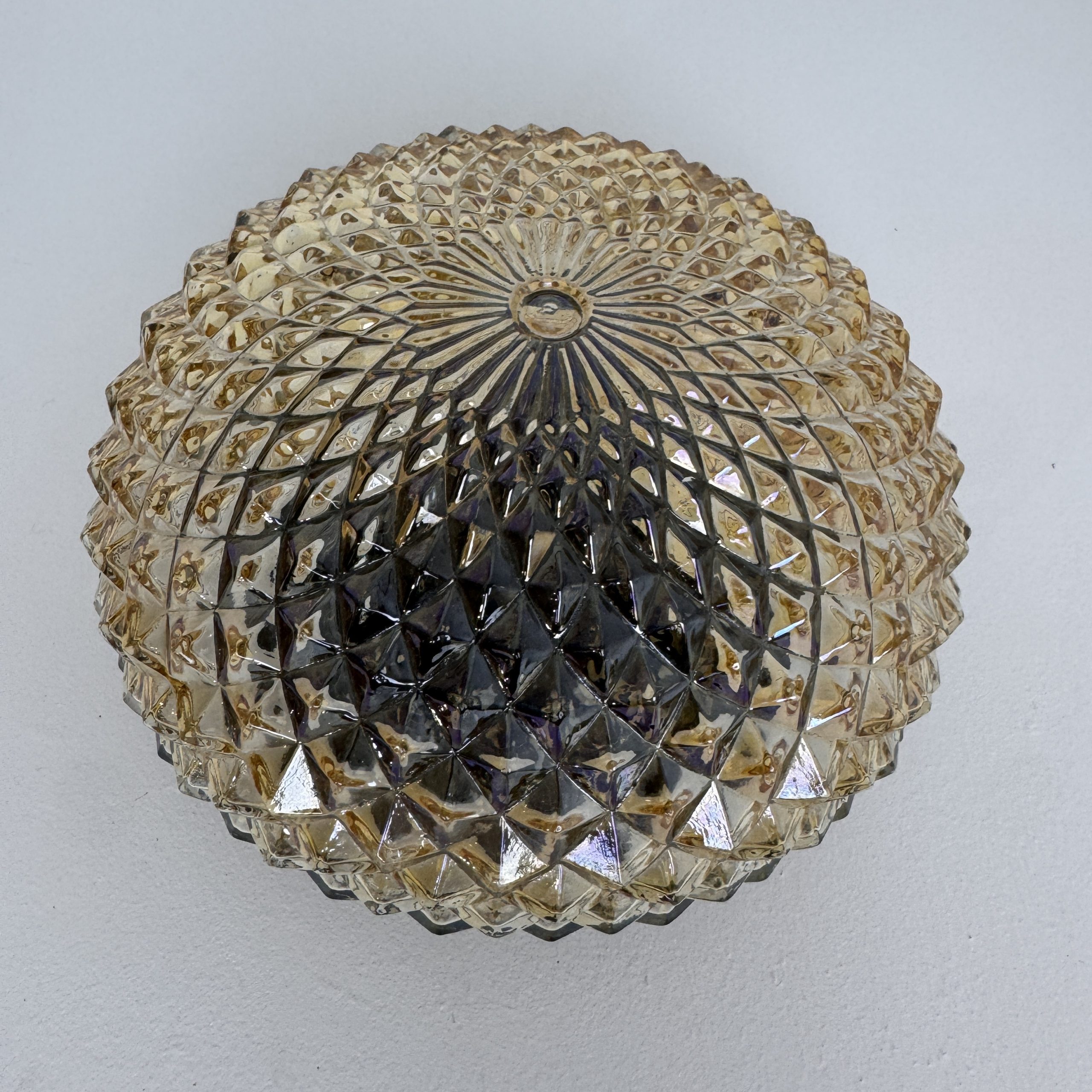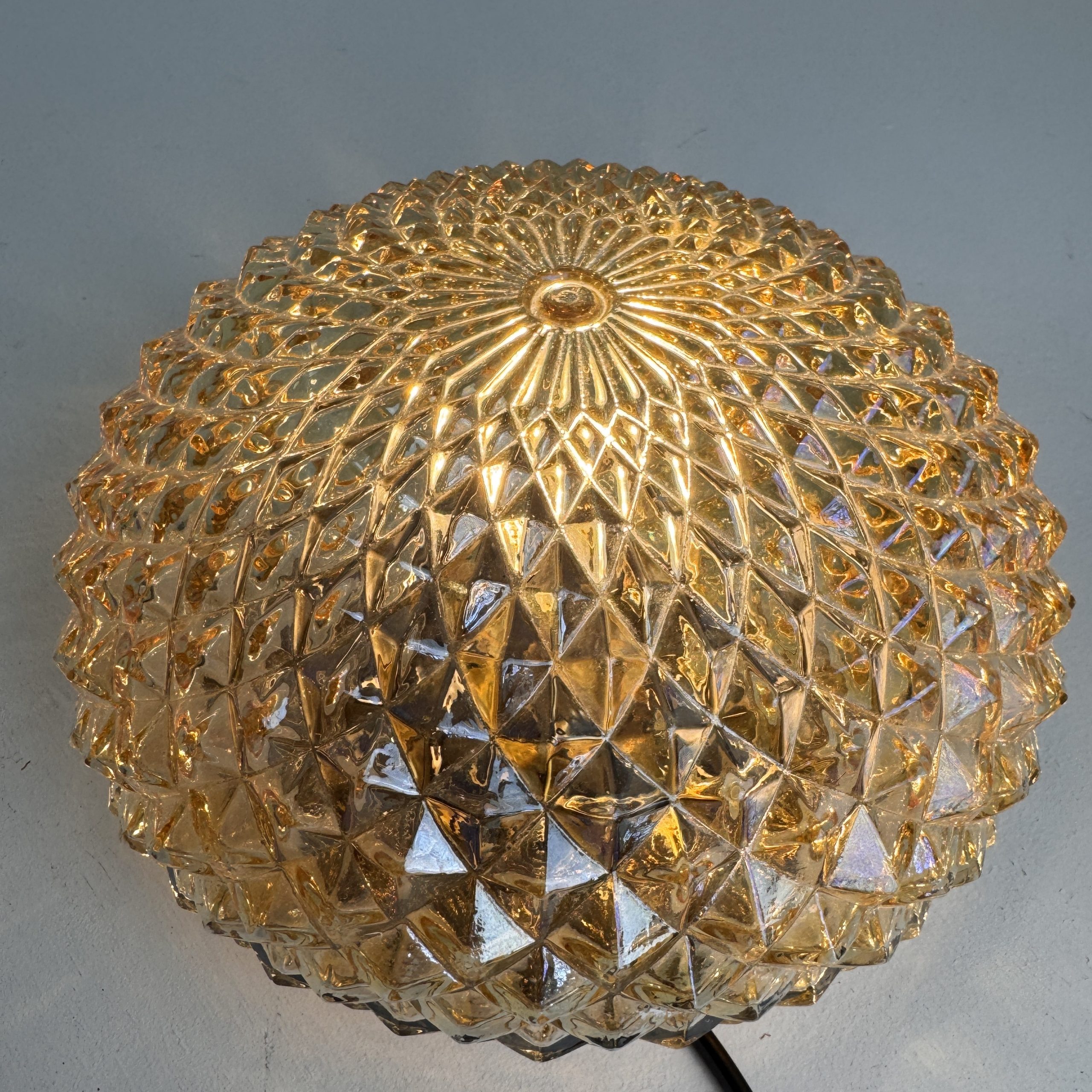 Petite applique ronde vintage en verre ambré des années 1970. Base en métal. Belle lumière.