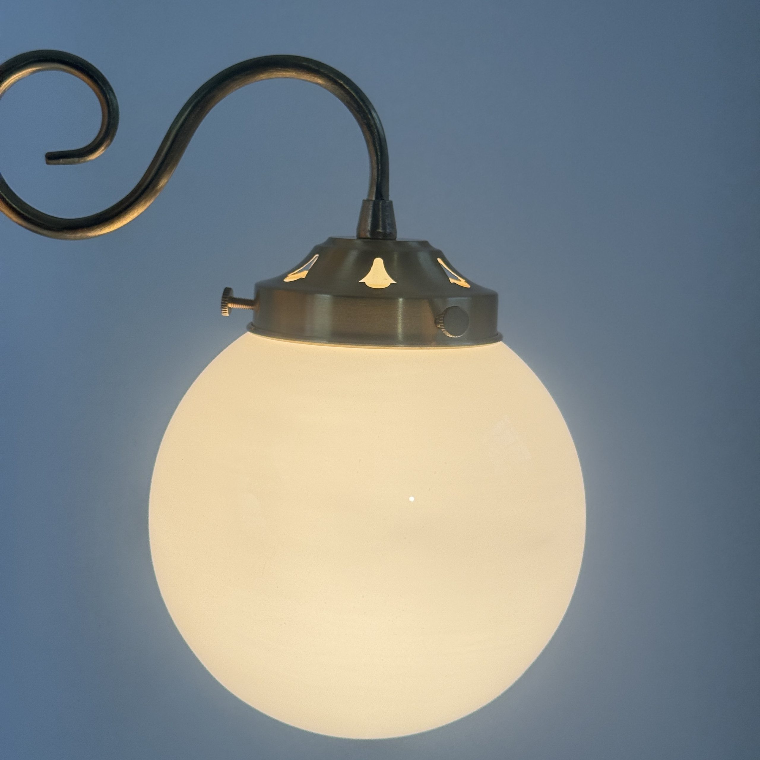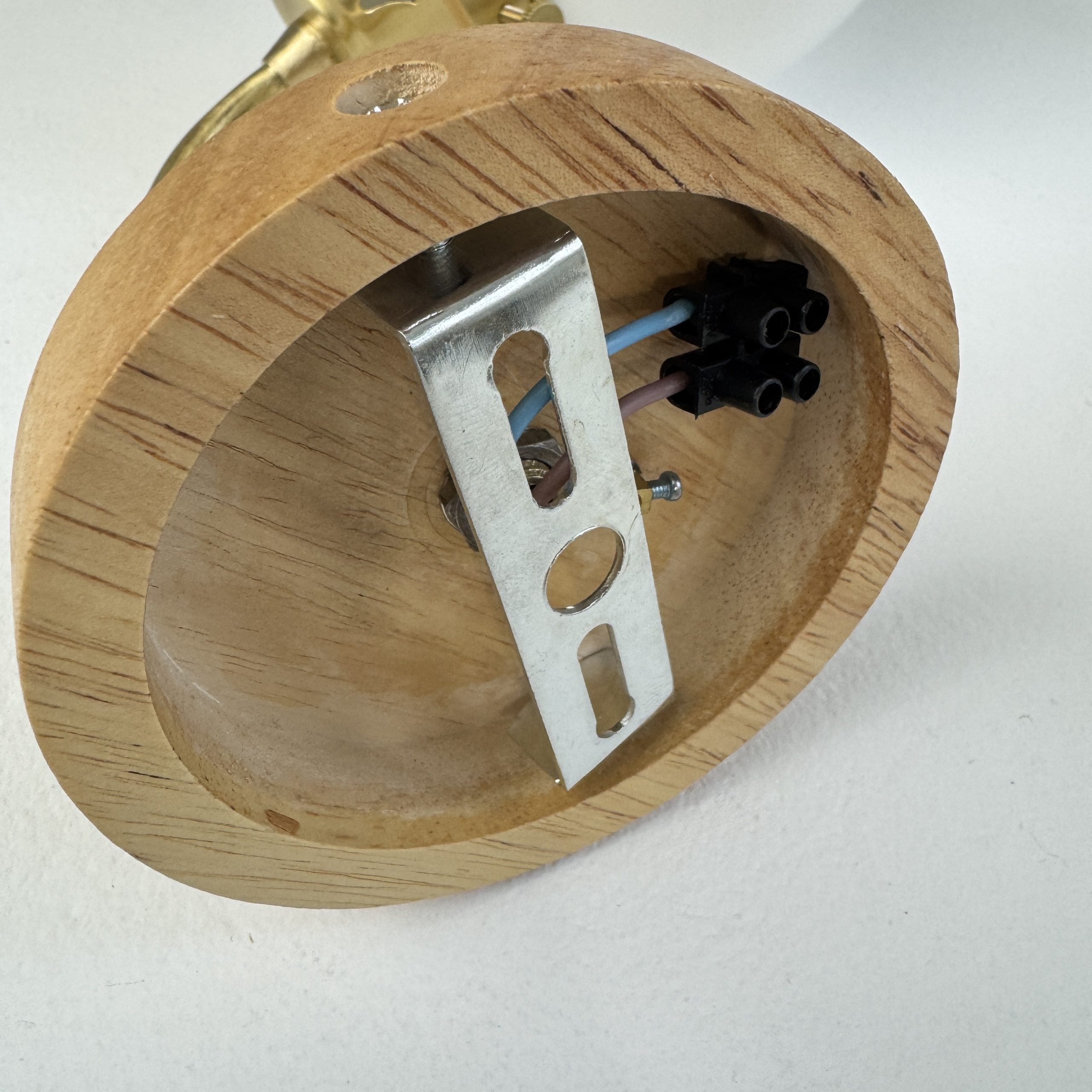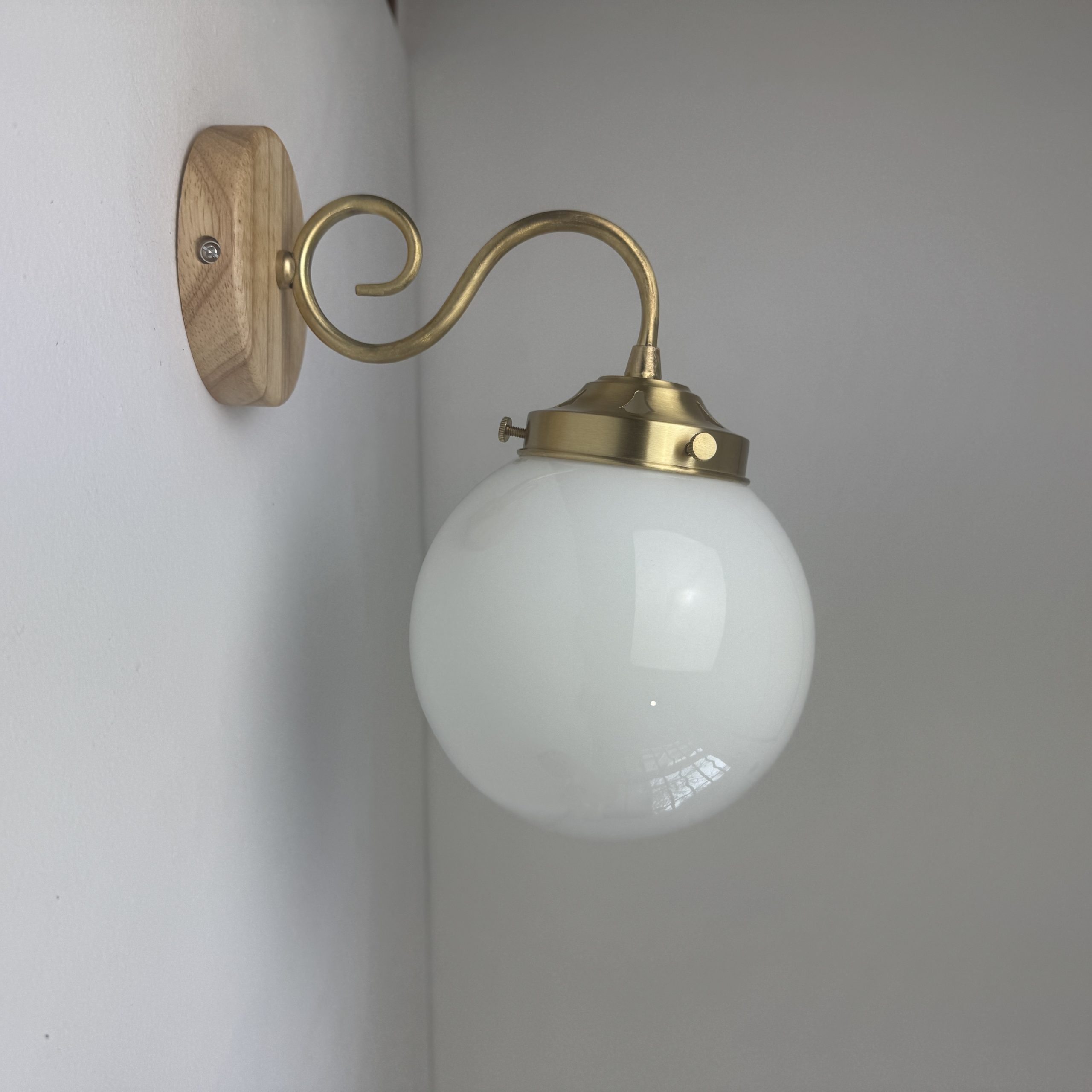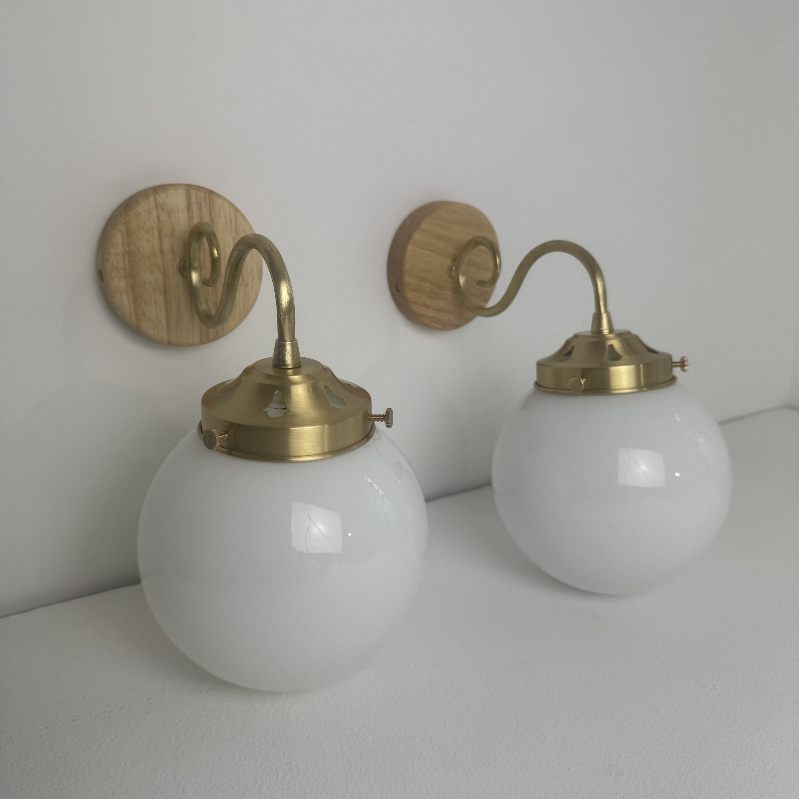 Lot de 2 appliques en laiton et opaline. En bel état général. La base en bois est neuve. Belle lumière.
