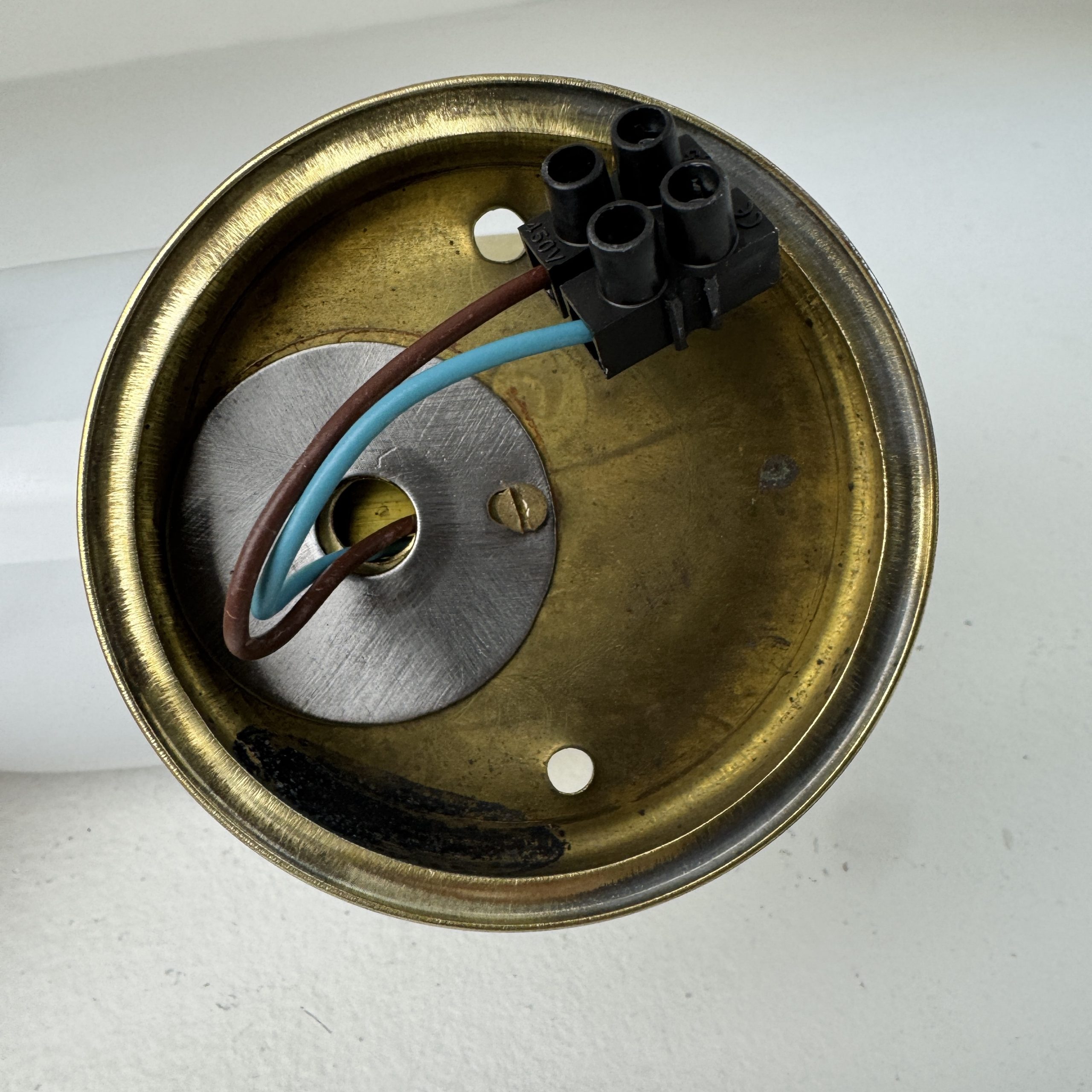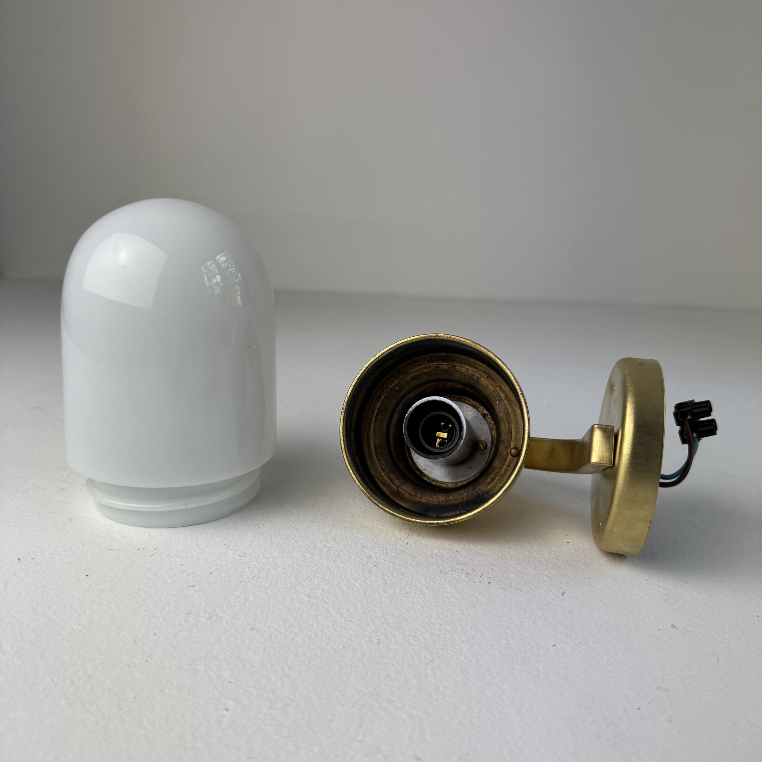 Petite applique vintage en laiton et opaline à visser. En bel état général.