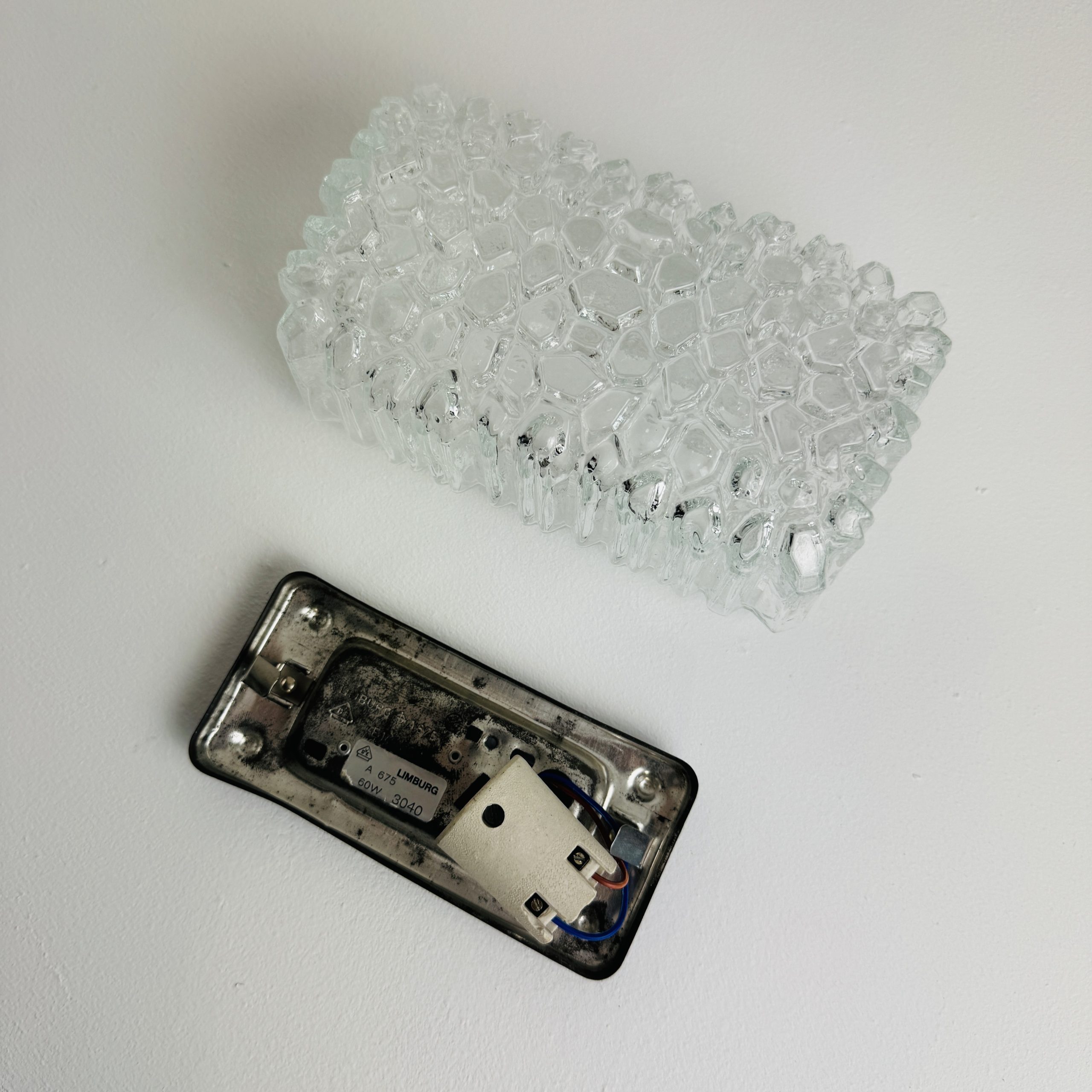 Belle petite applique estampillée « LIMBURG » années 1960. Verre alvéolé et base en métal. Belle lumière.