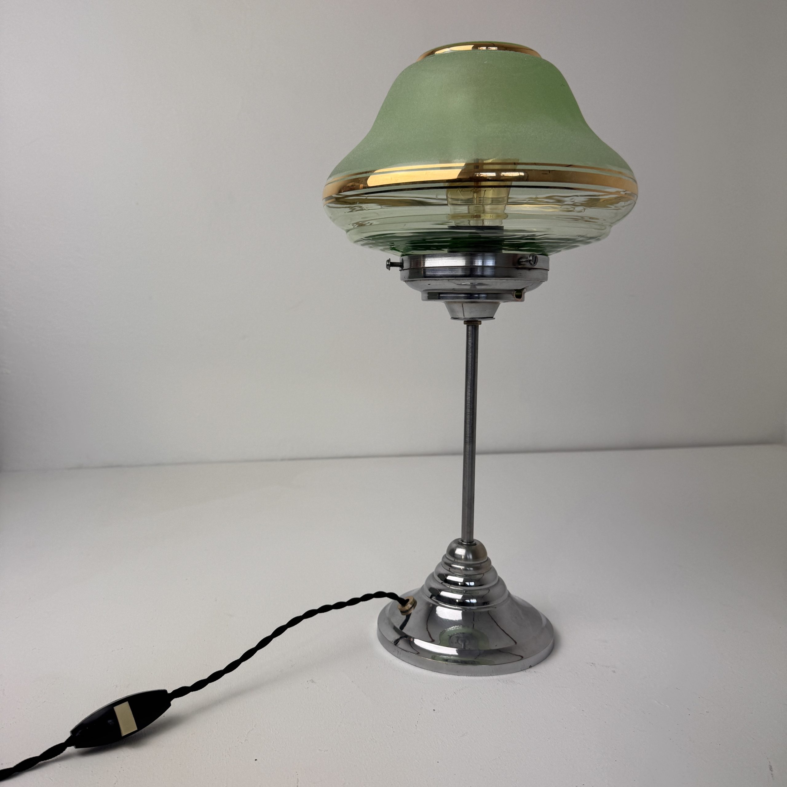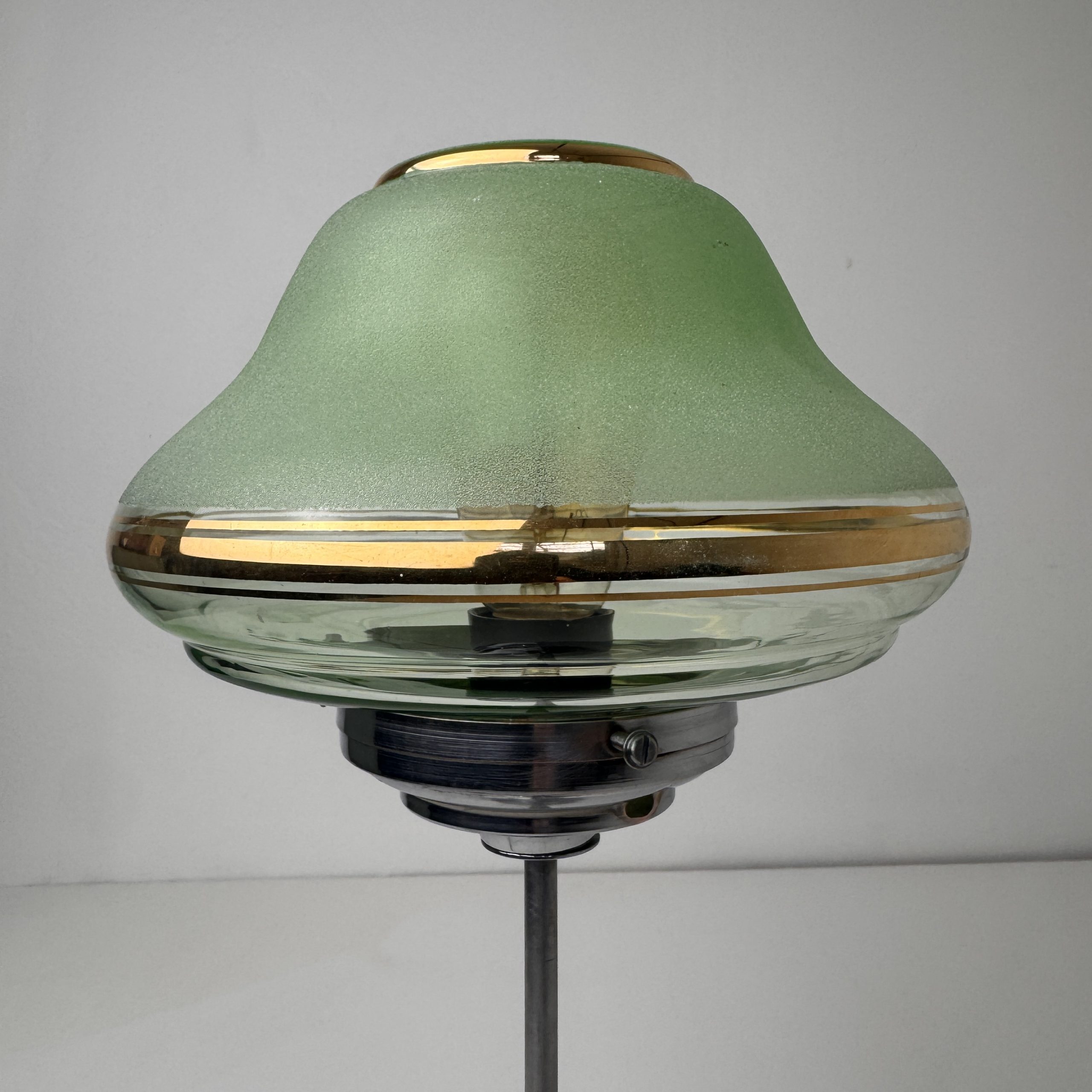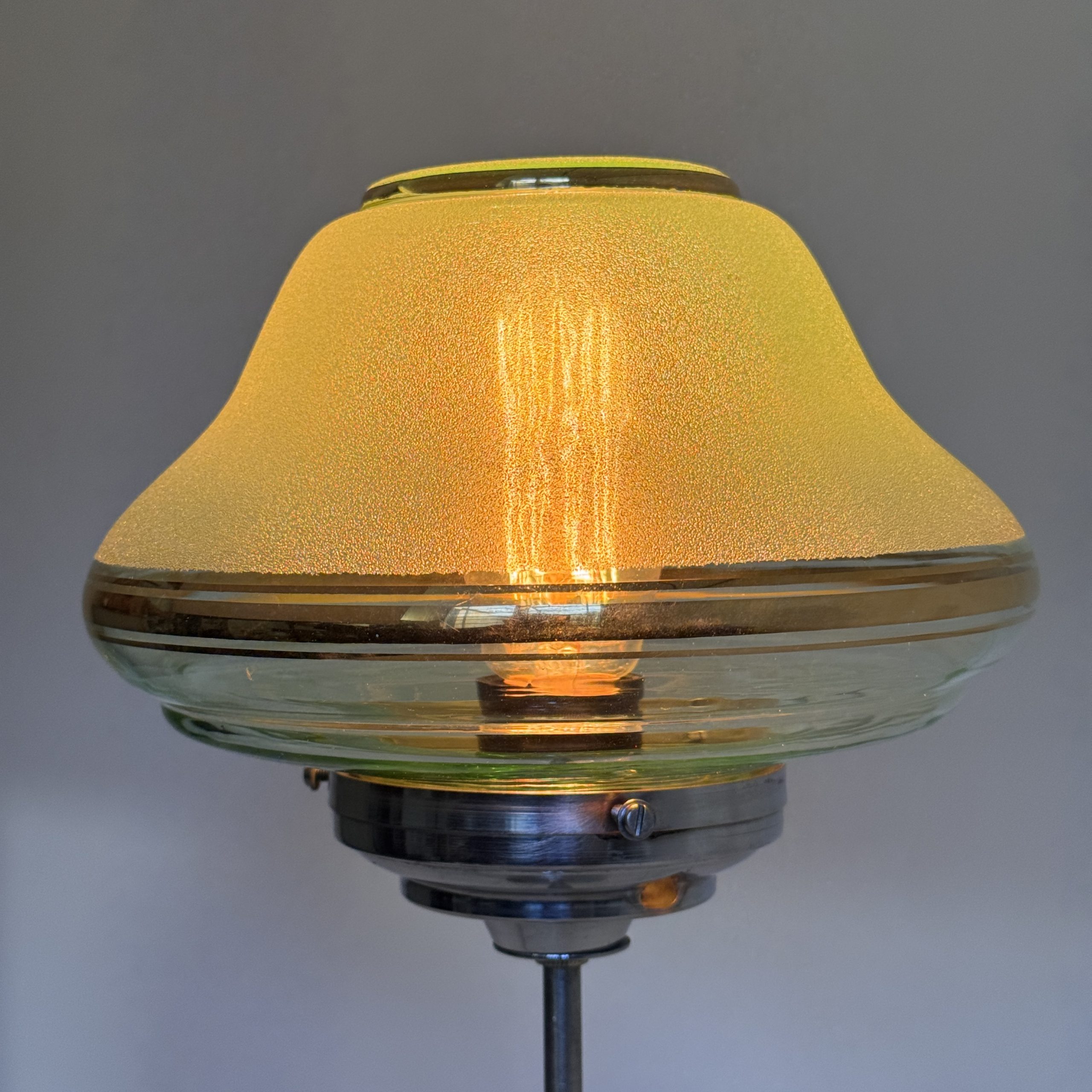 Belle lampe métal avec son abat-jour en verre granité. Très bel état général. Lumière douce.