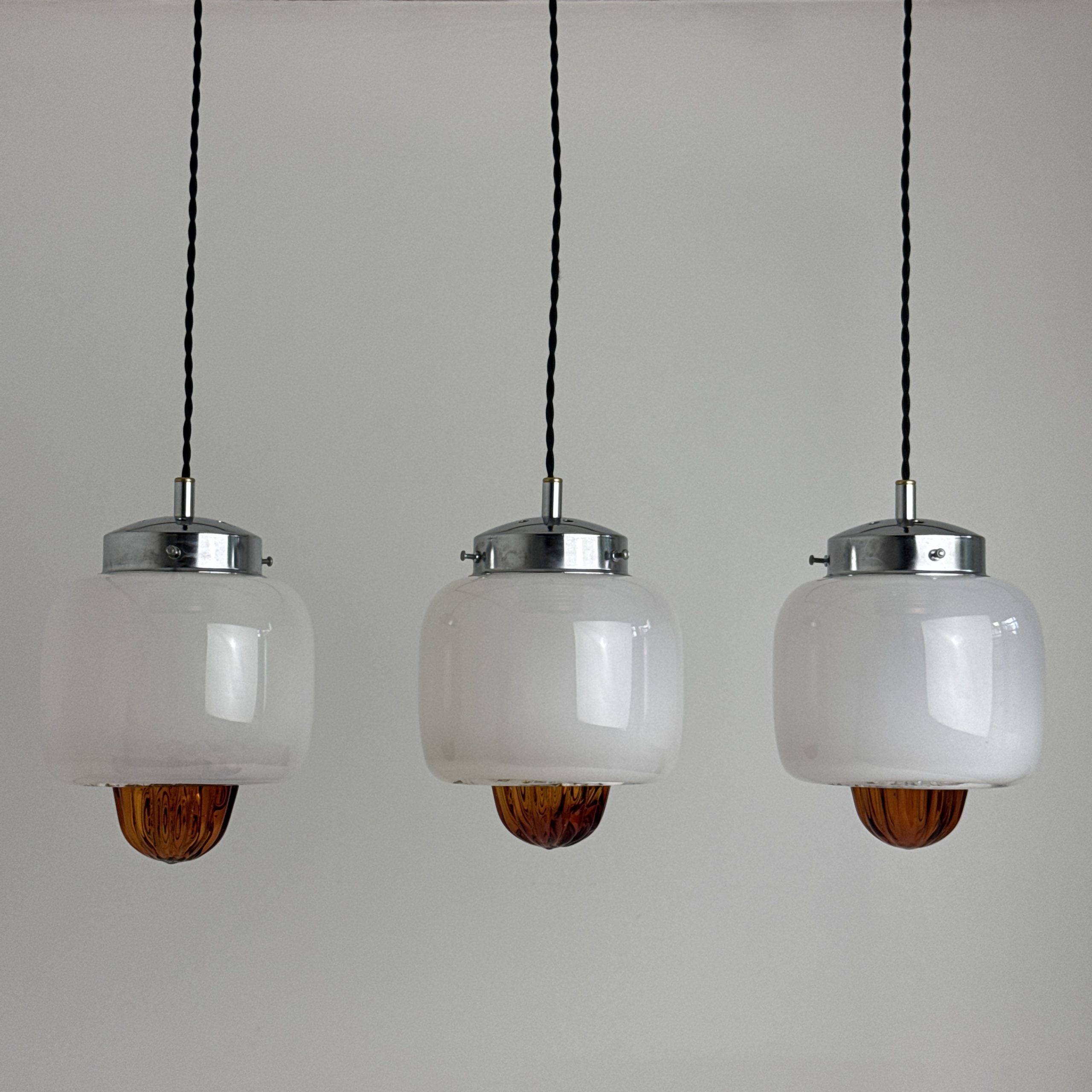 Trio de suspensions en Verre de Murano des années 1960.