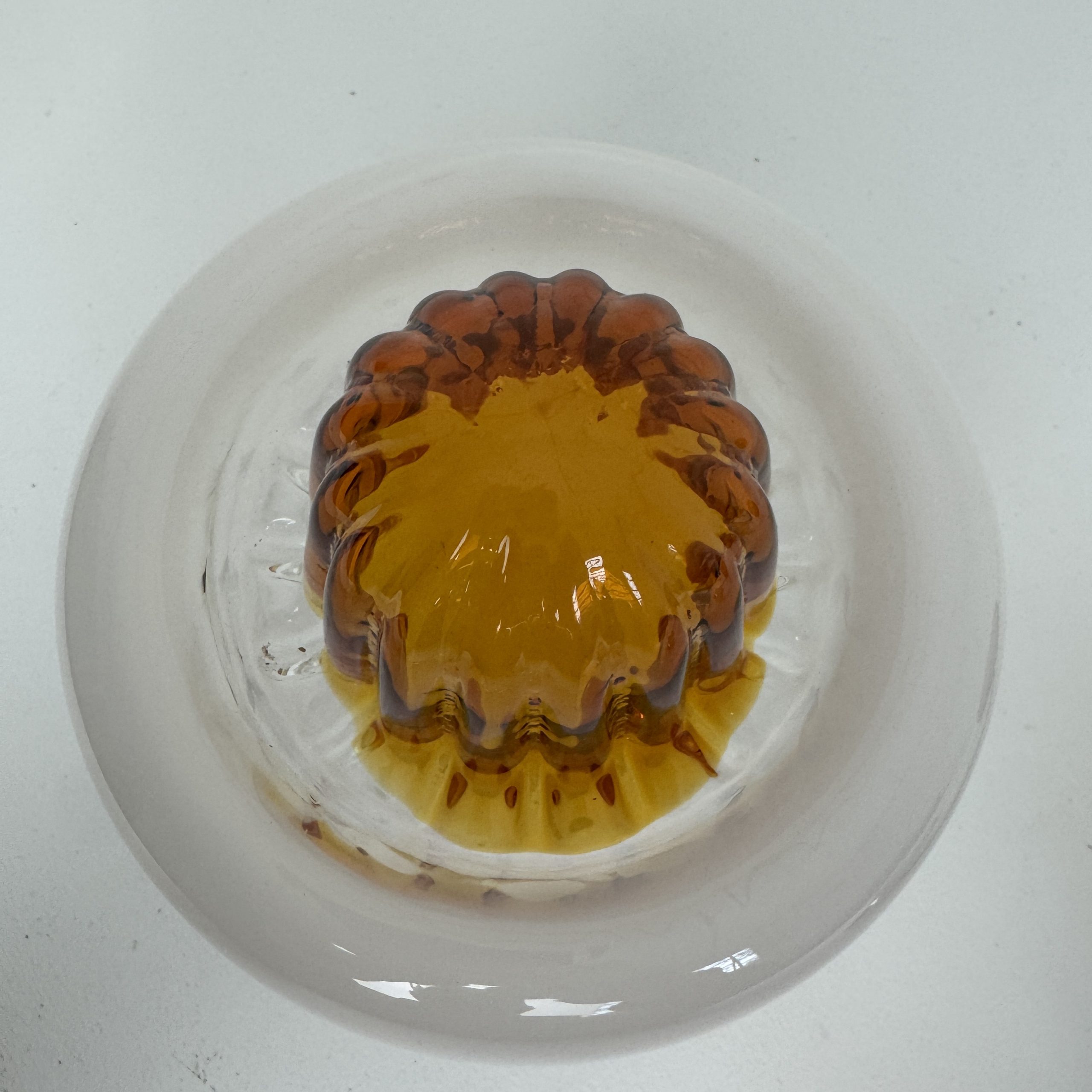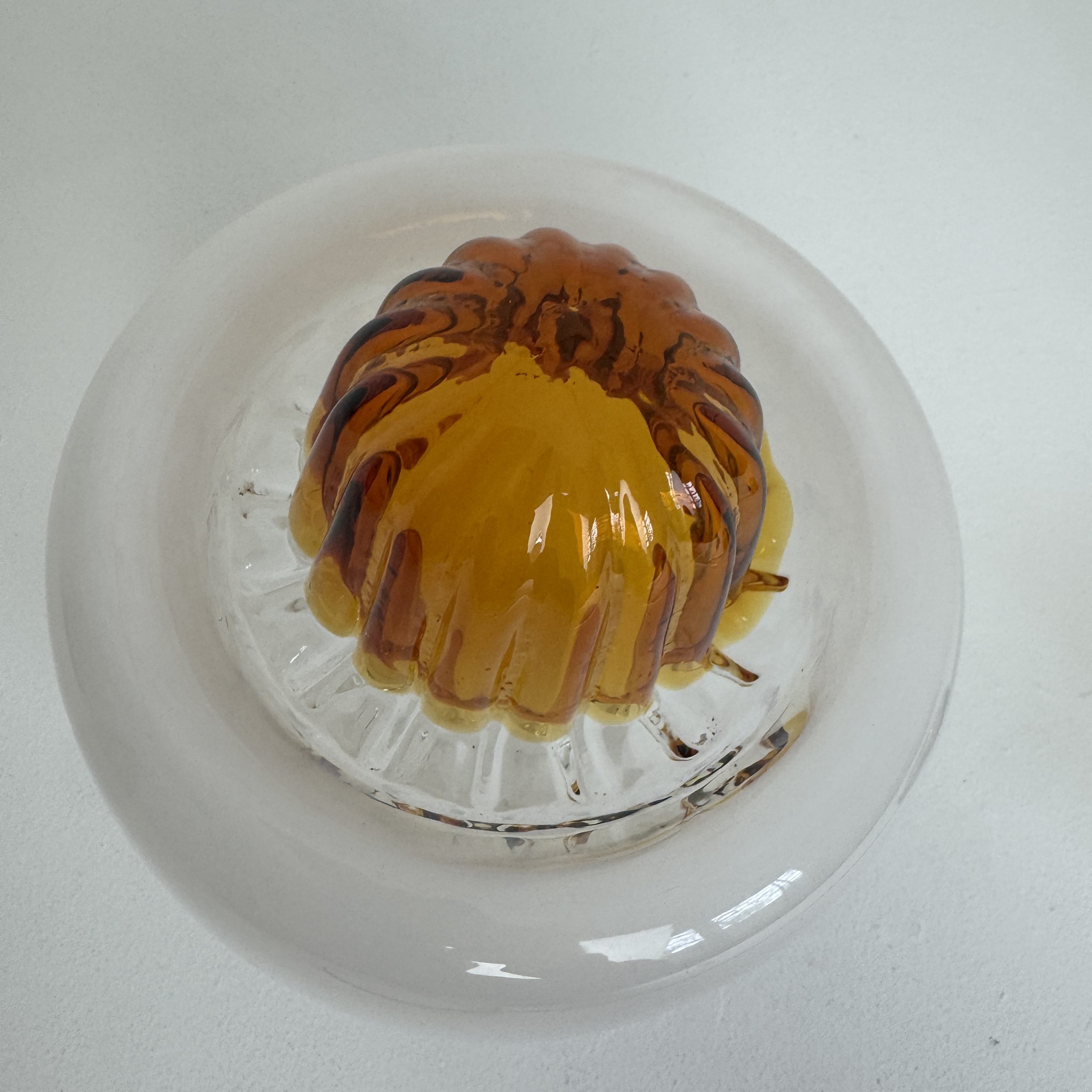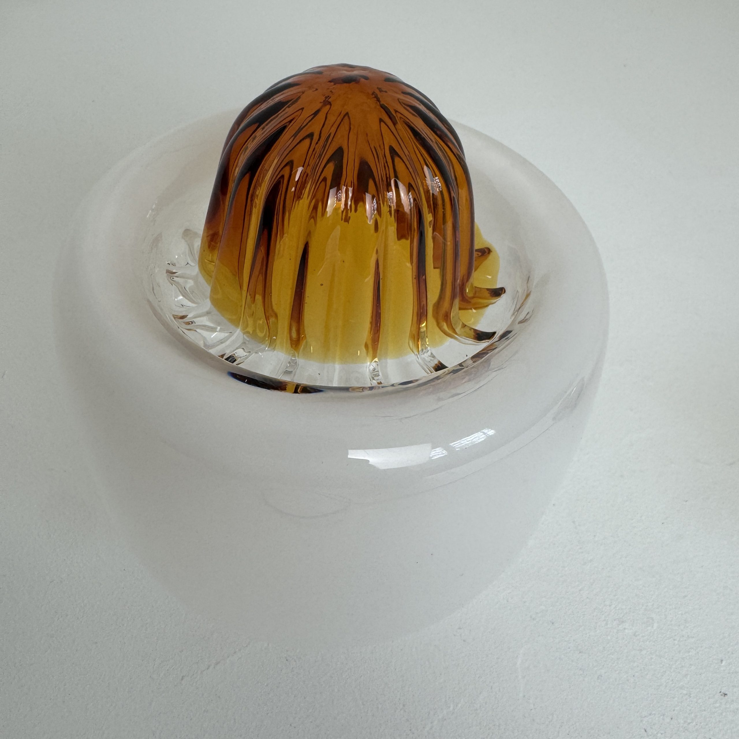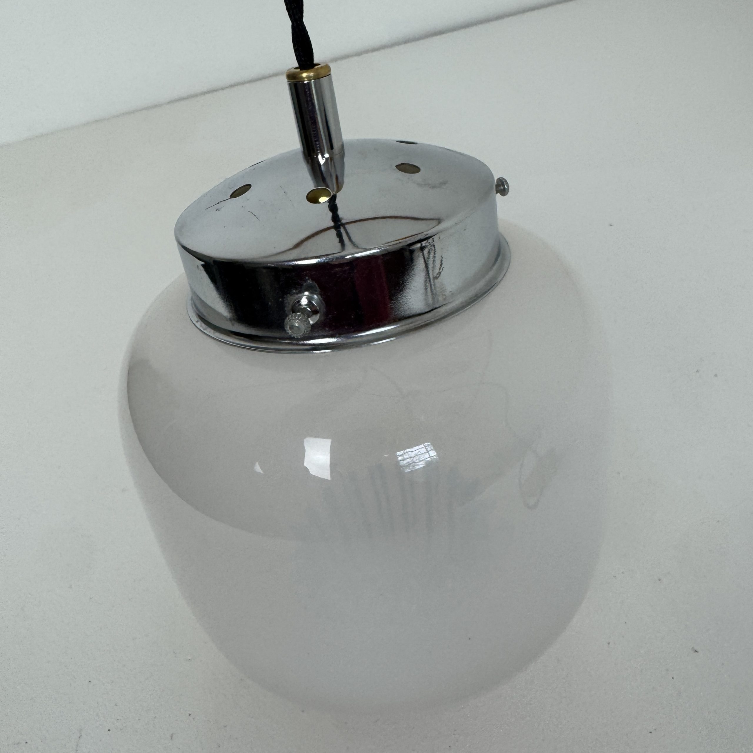 Verre opalescent sur la partie supérieure et transparent vers le bas avec moulure colorée pour un bel effet de lumière. Griffe en métal chromé.