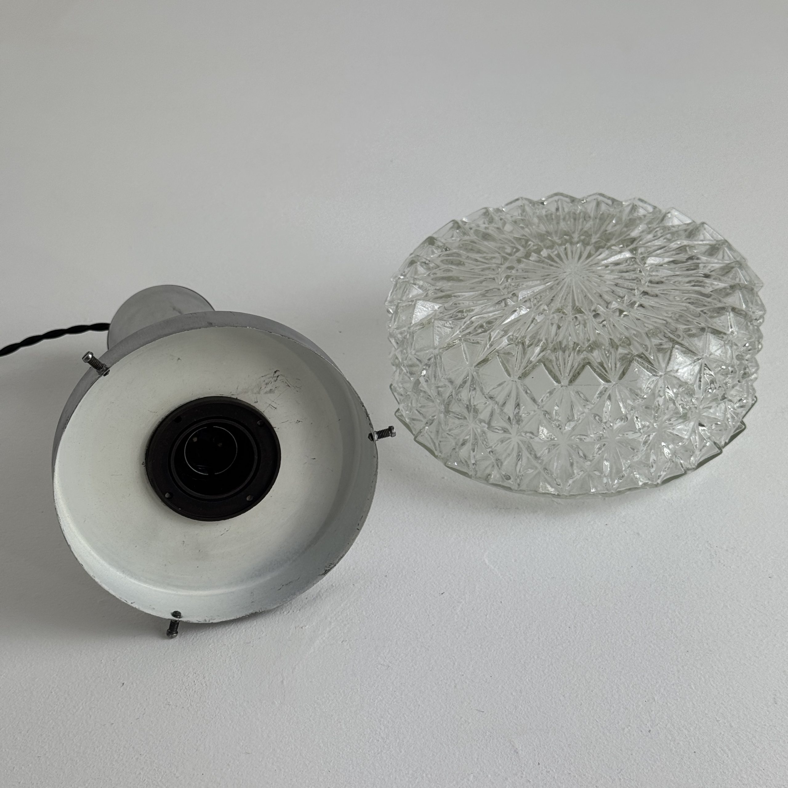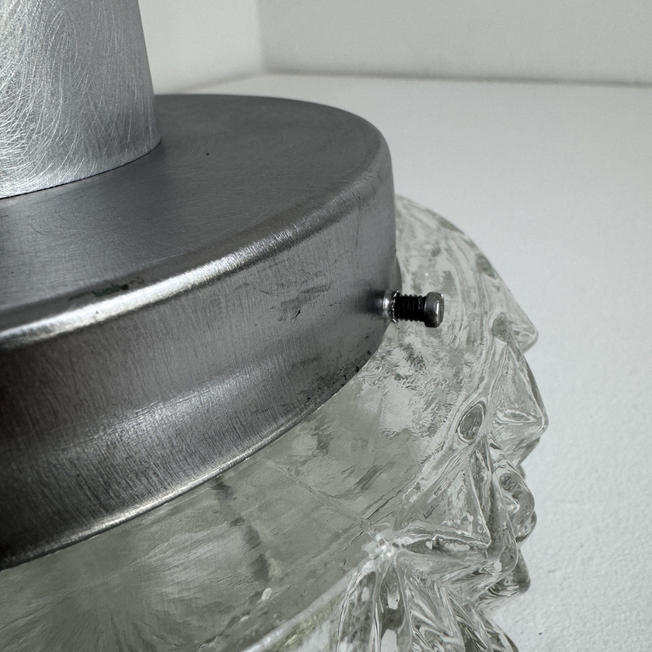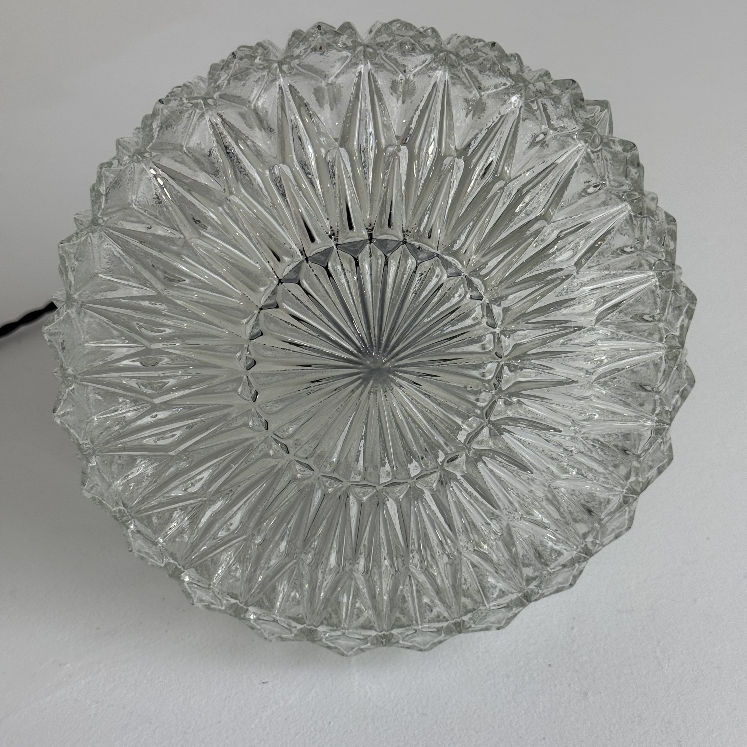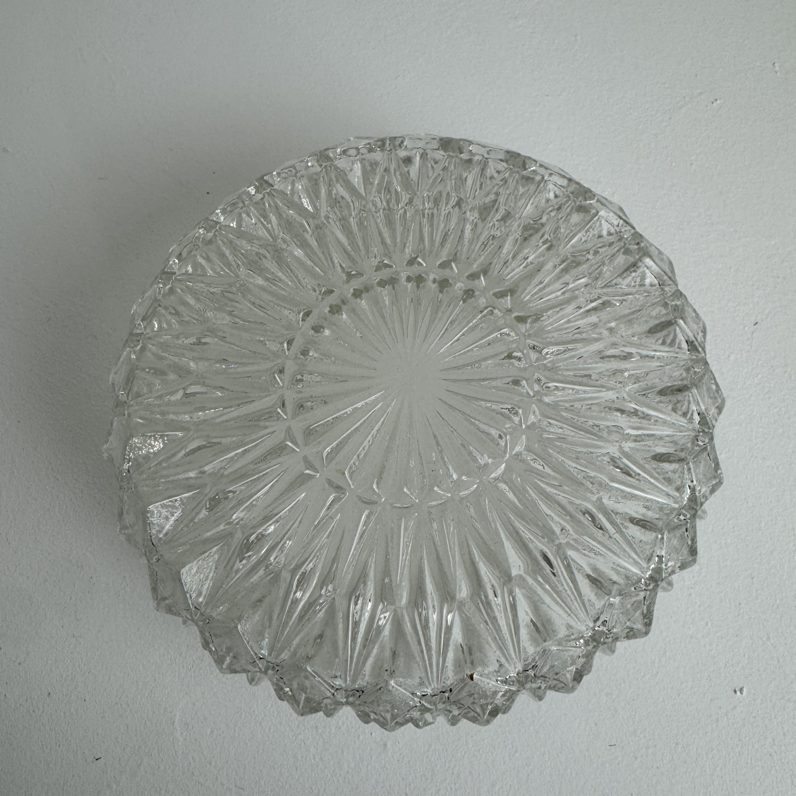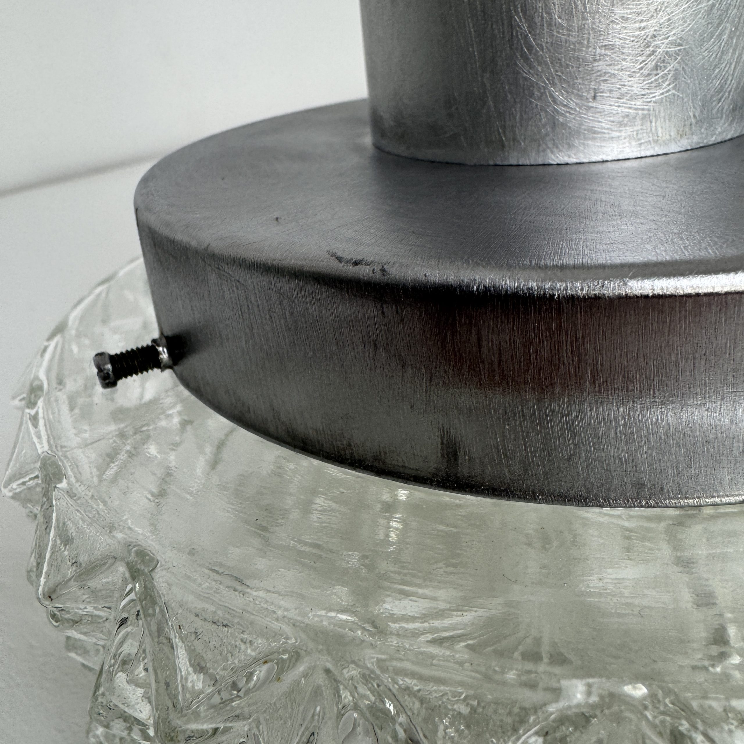 Magnifique suspension scandinave en métal et verre « pointe de diamants ». En bel état général. A noter quelques traces liées à son passé.