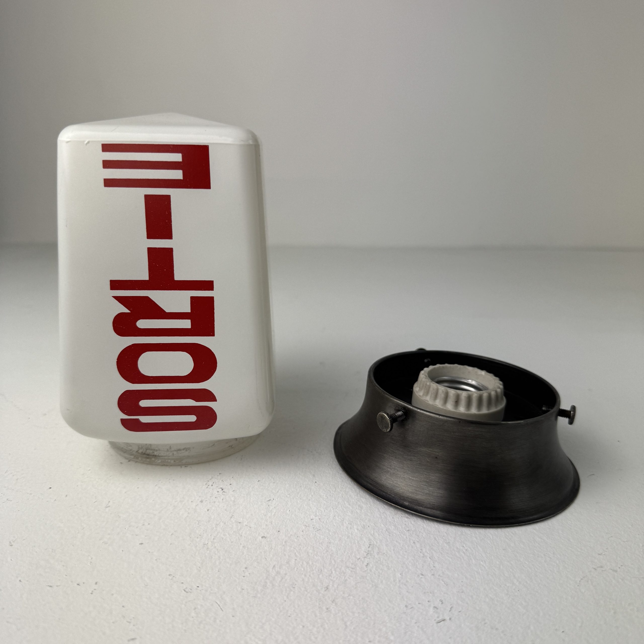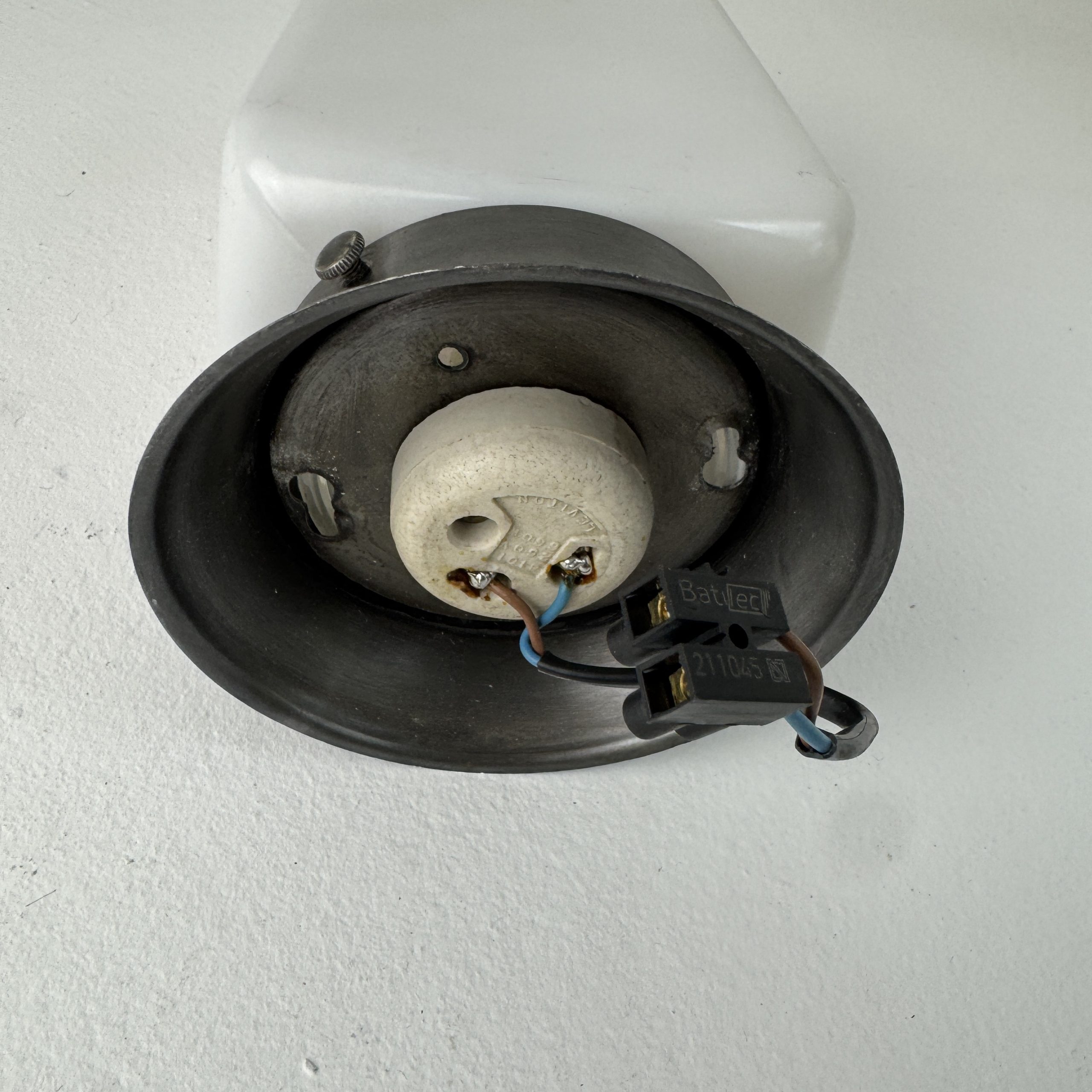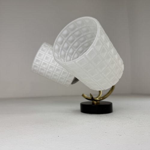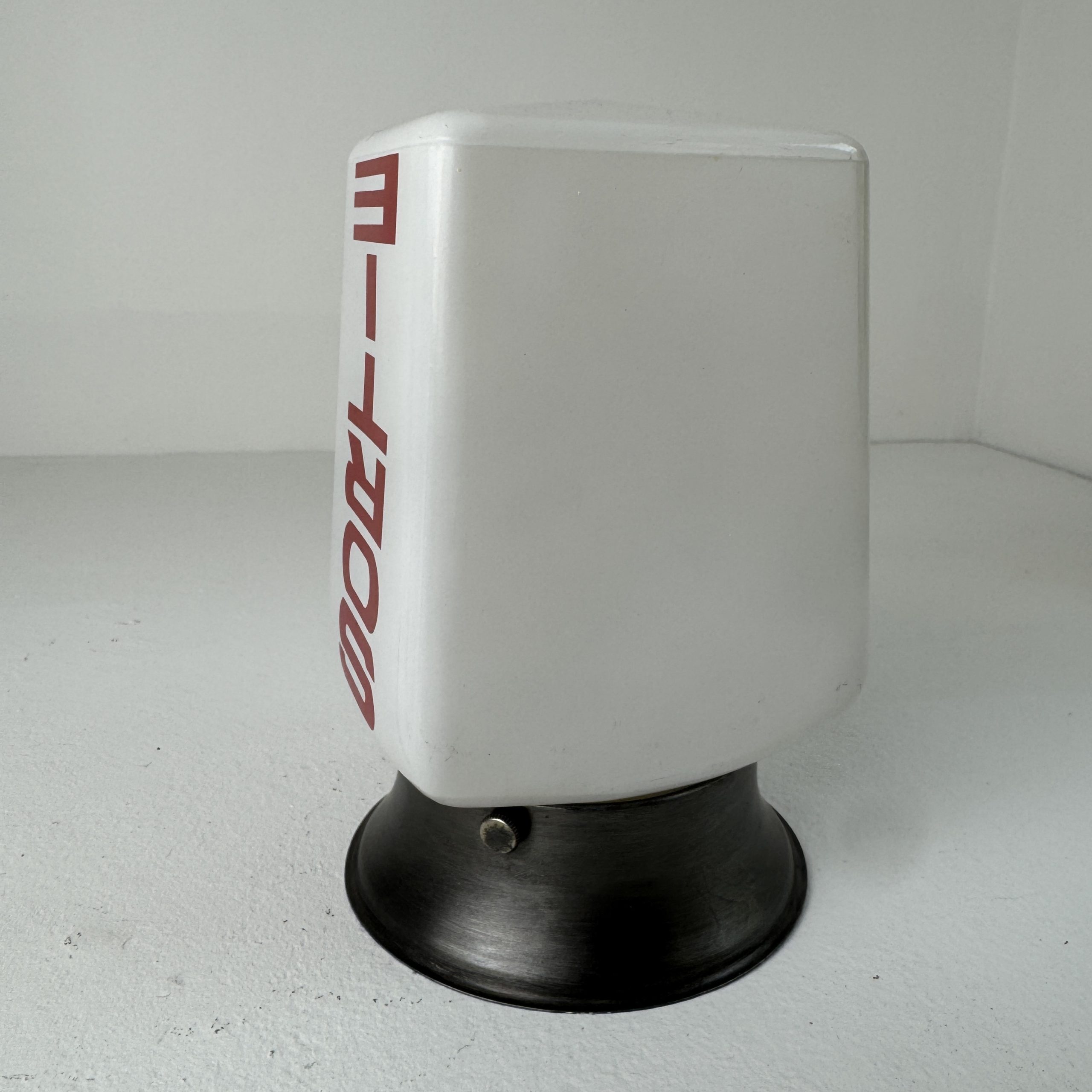 Lampe en opaline blanche. Base en métal. Electricité refaite à neuf, prête à poser.