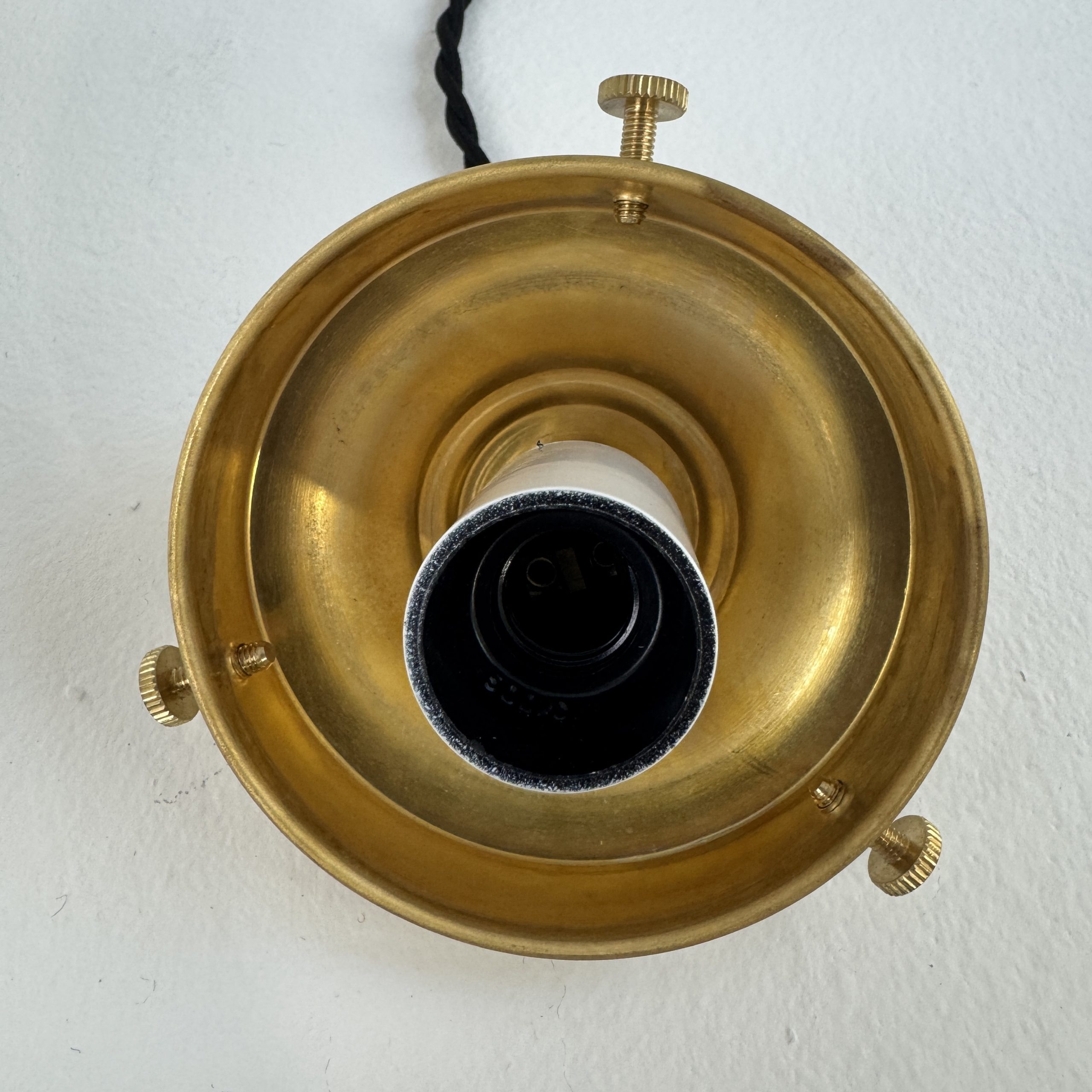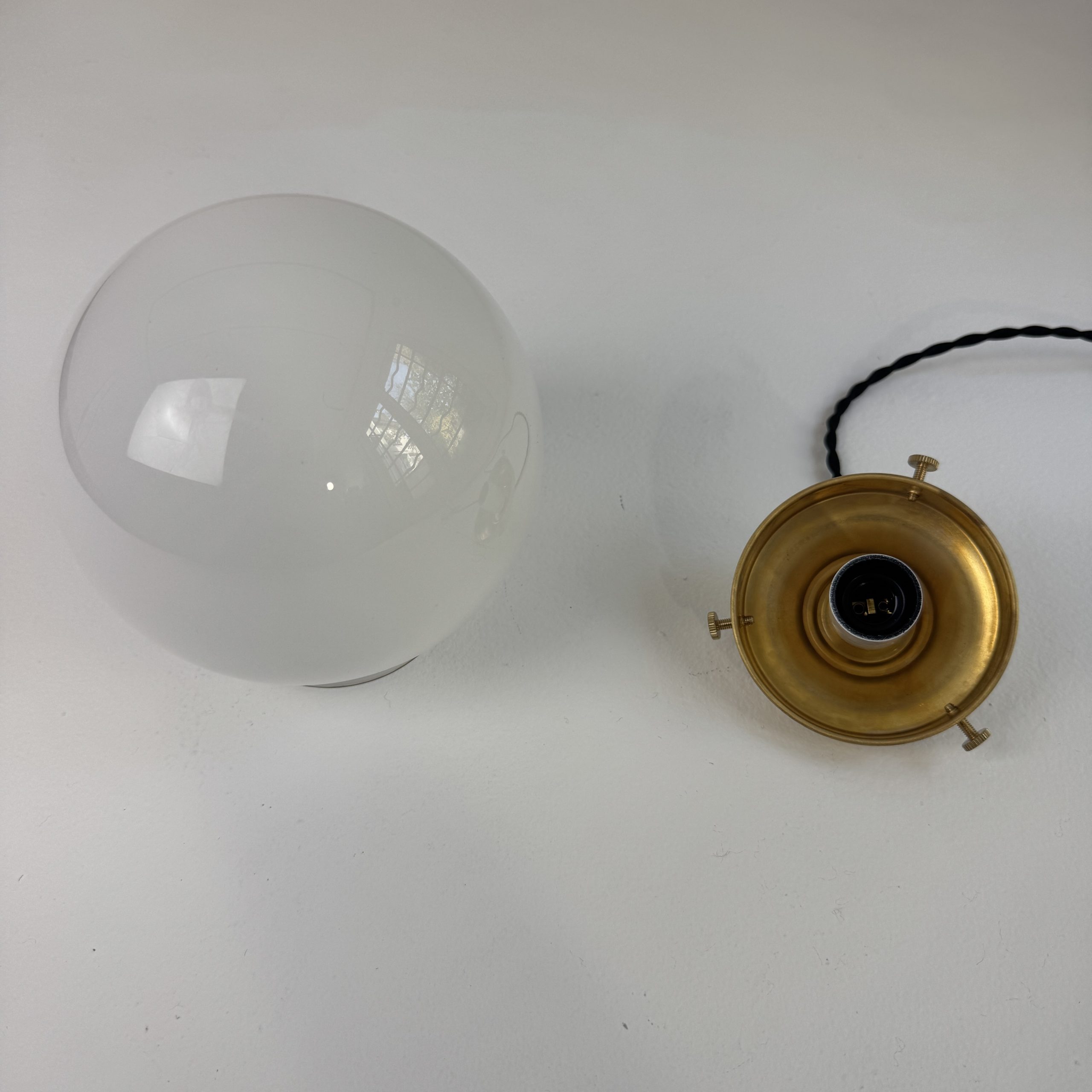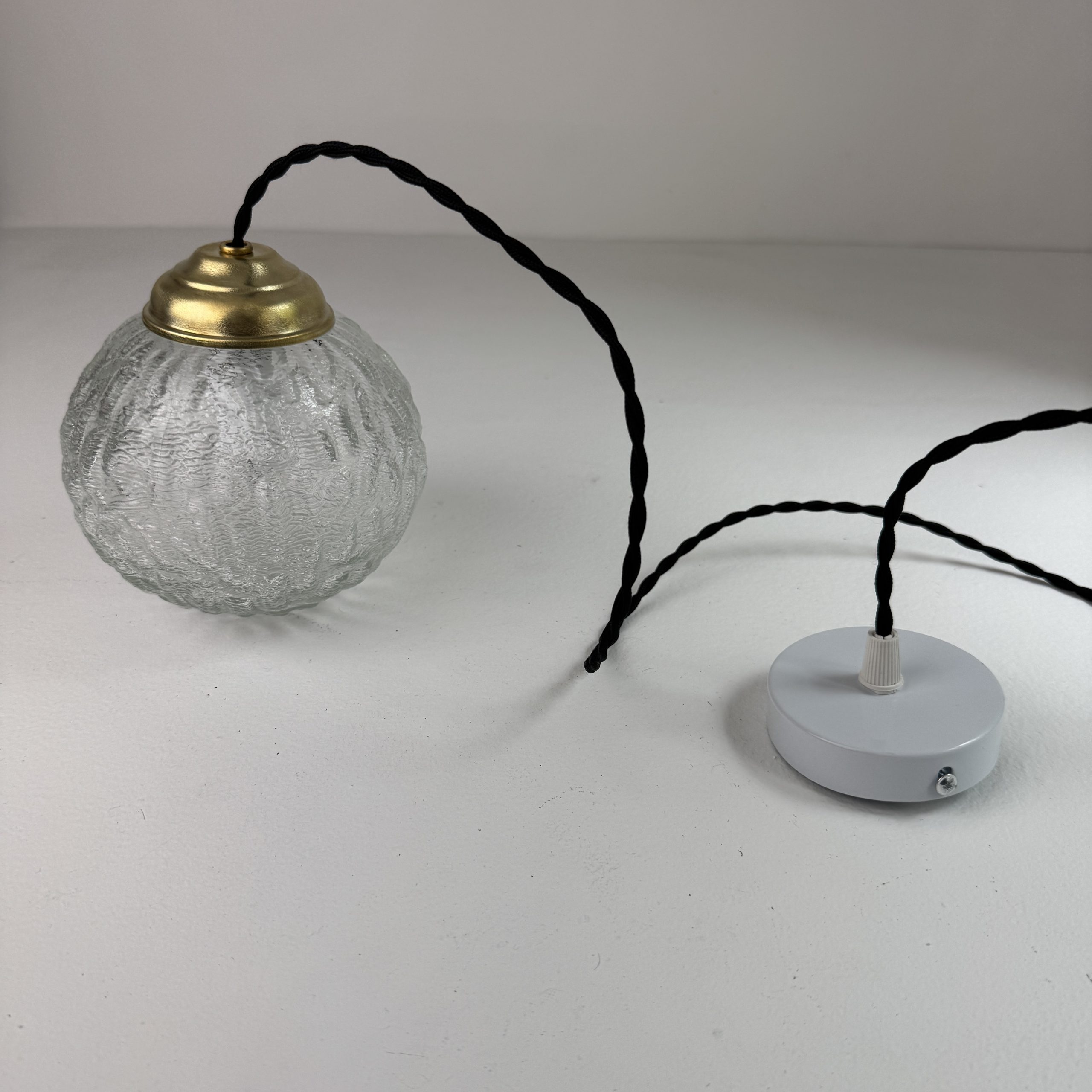 L’électricité a été refaite. Douille à vis petit culot (Ampoules E14). Branchement par domino.