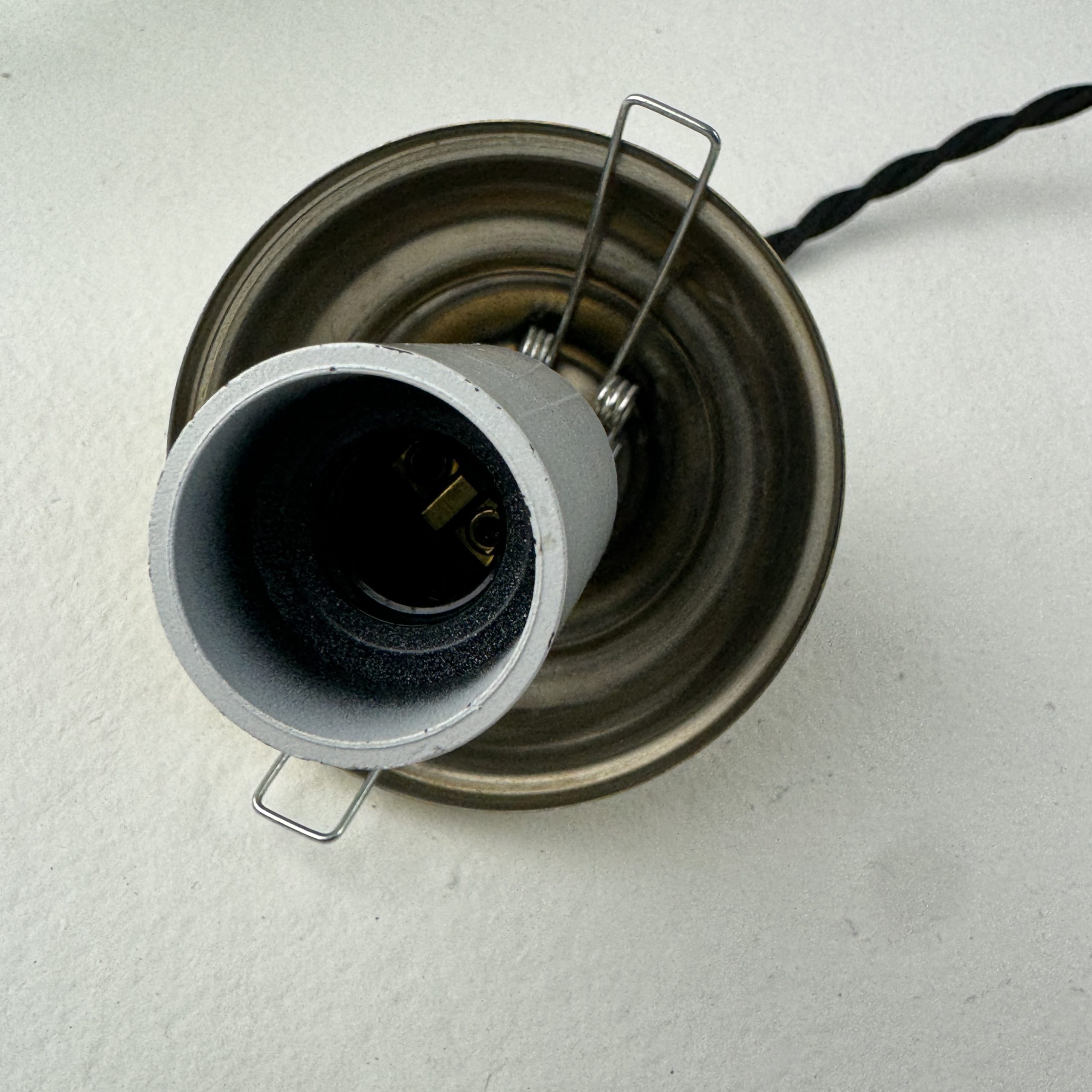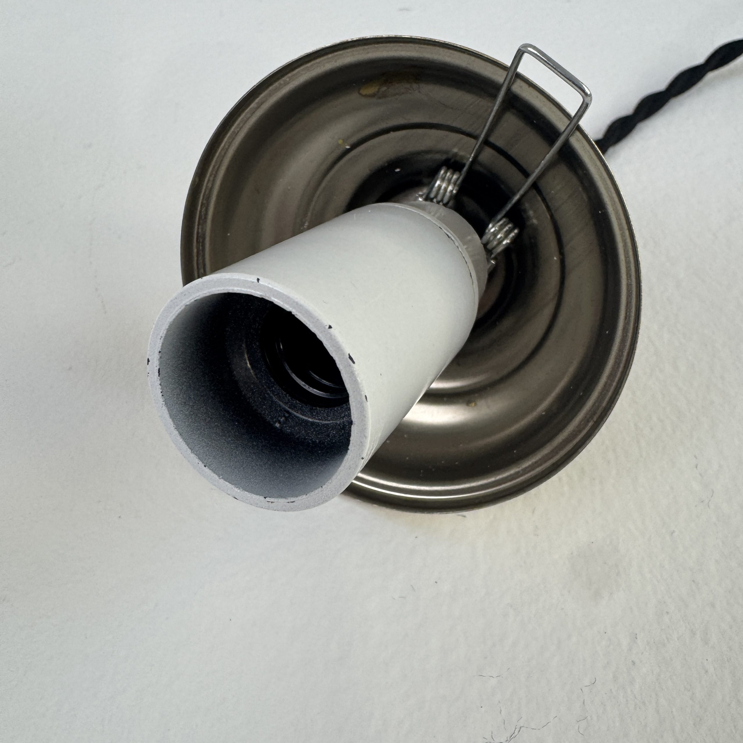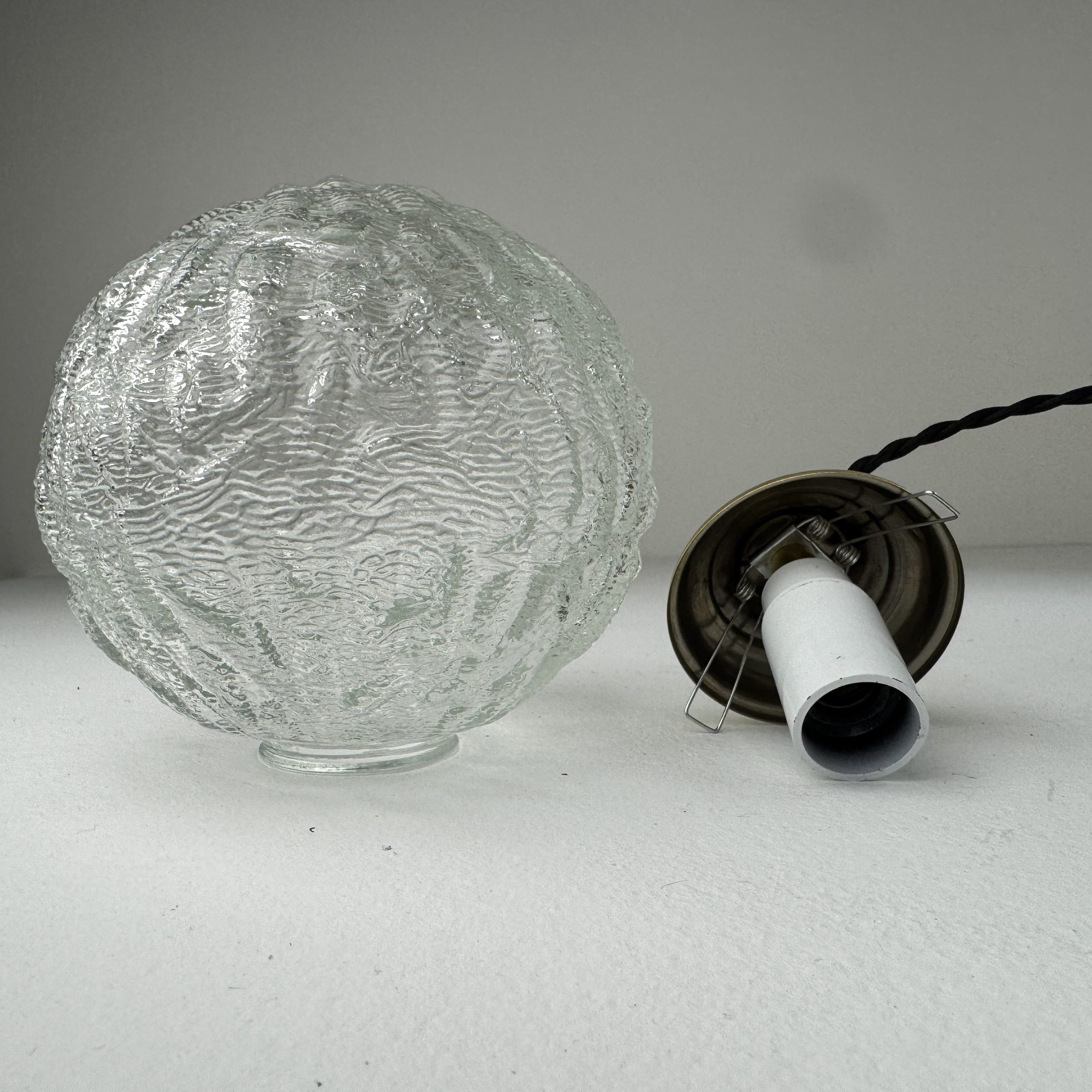 L’électricité a été refaite. Douille à vis petit culot (Ampoules E14). Branchement par domino.