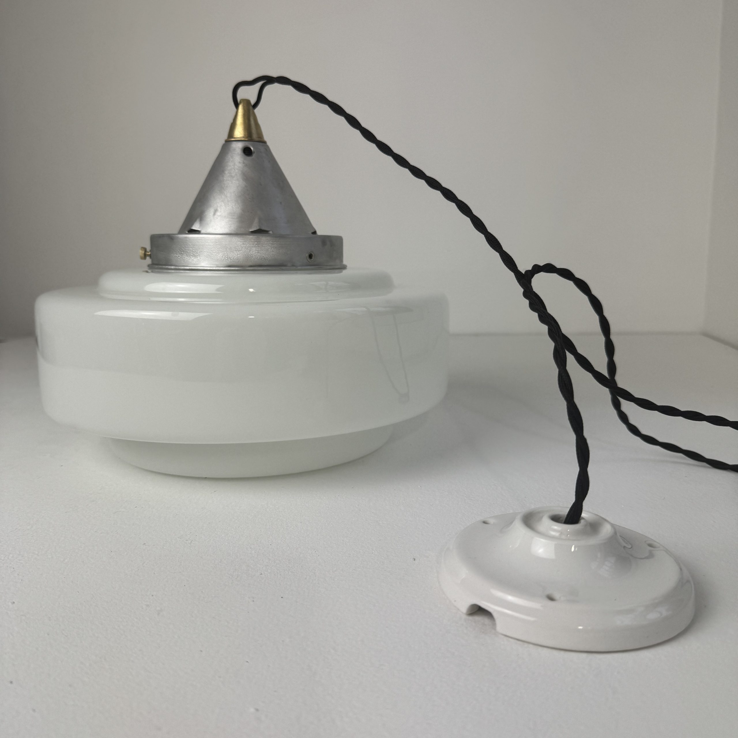 Magnifique suspension skyscraper en opaline. Année 1930. En bel état général.