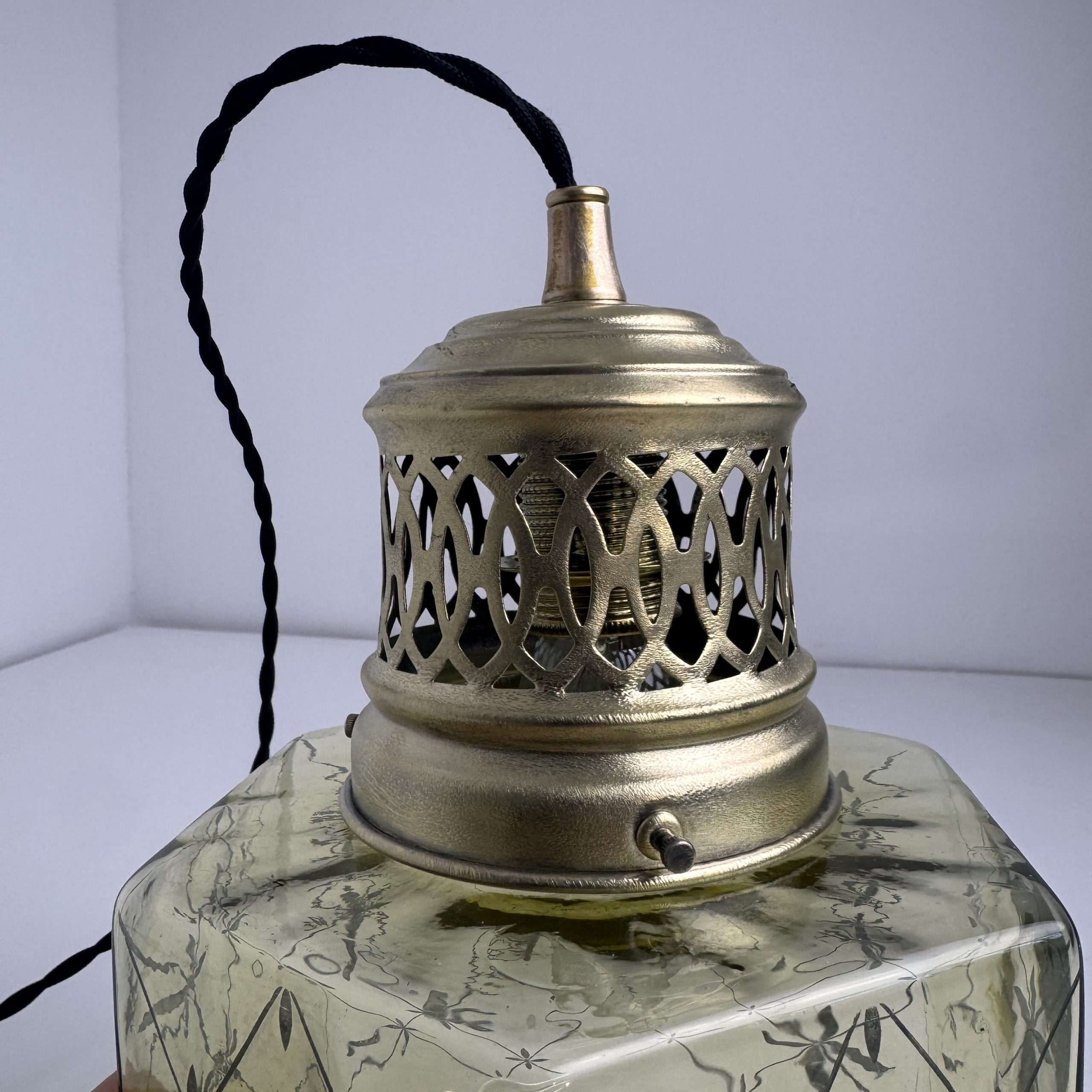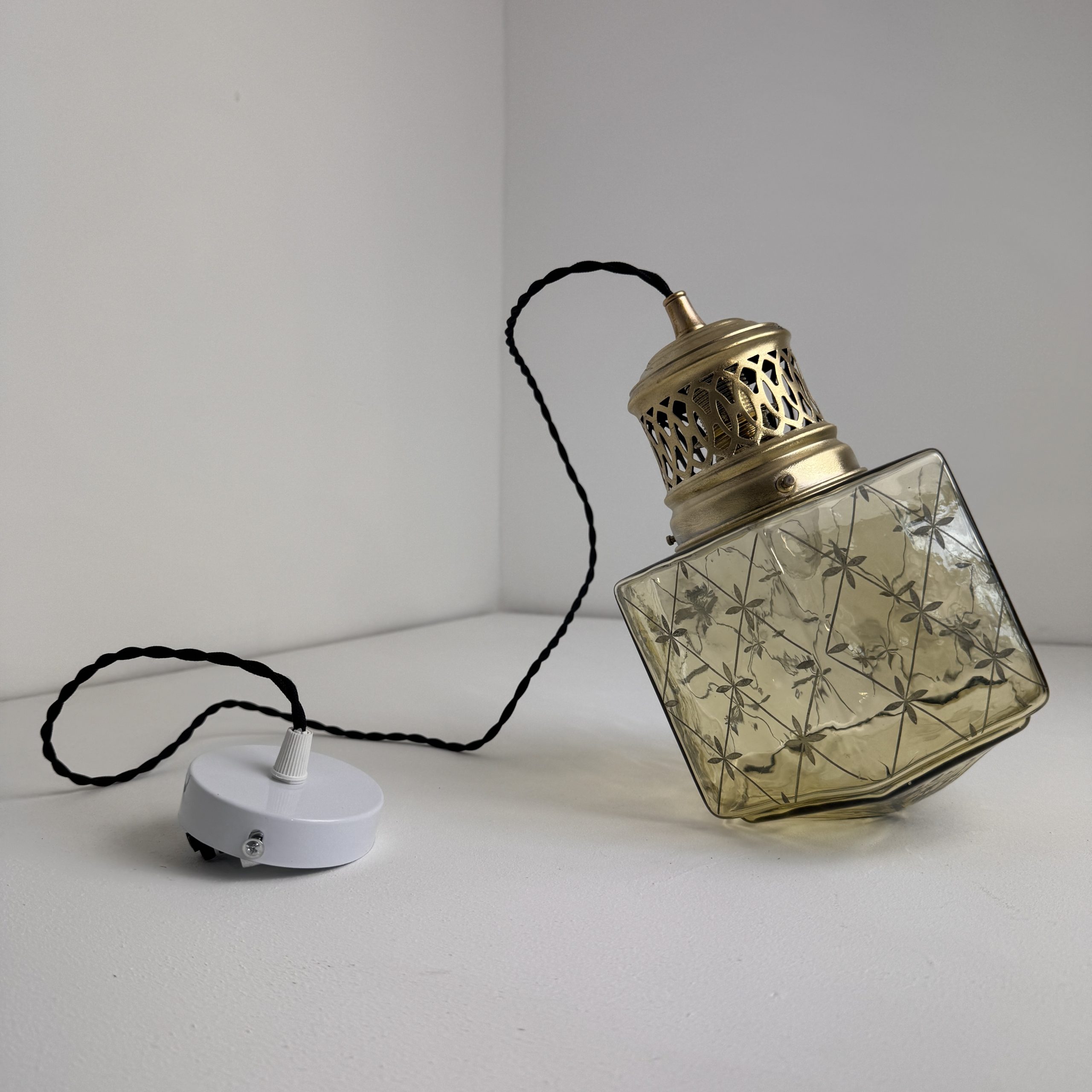 Superbe suspension Art-Déco en verre teinté. Année 1930. En bel état général.