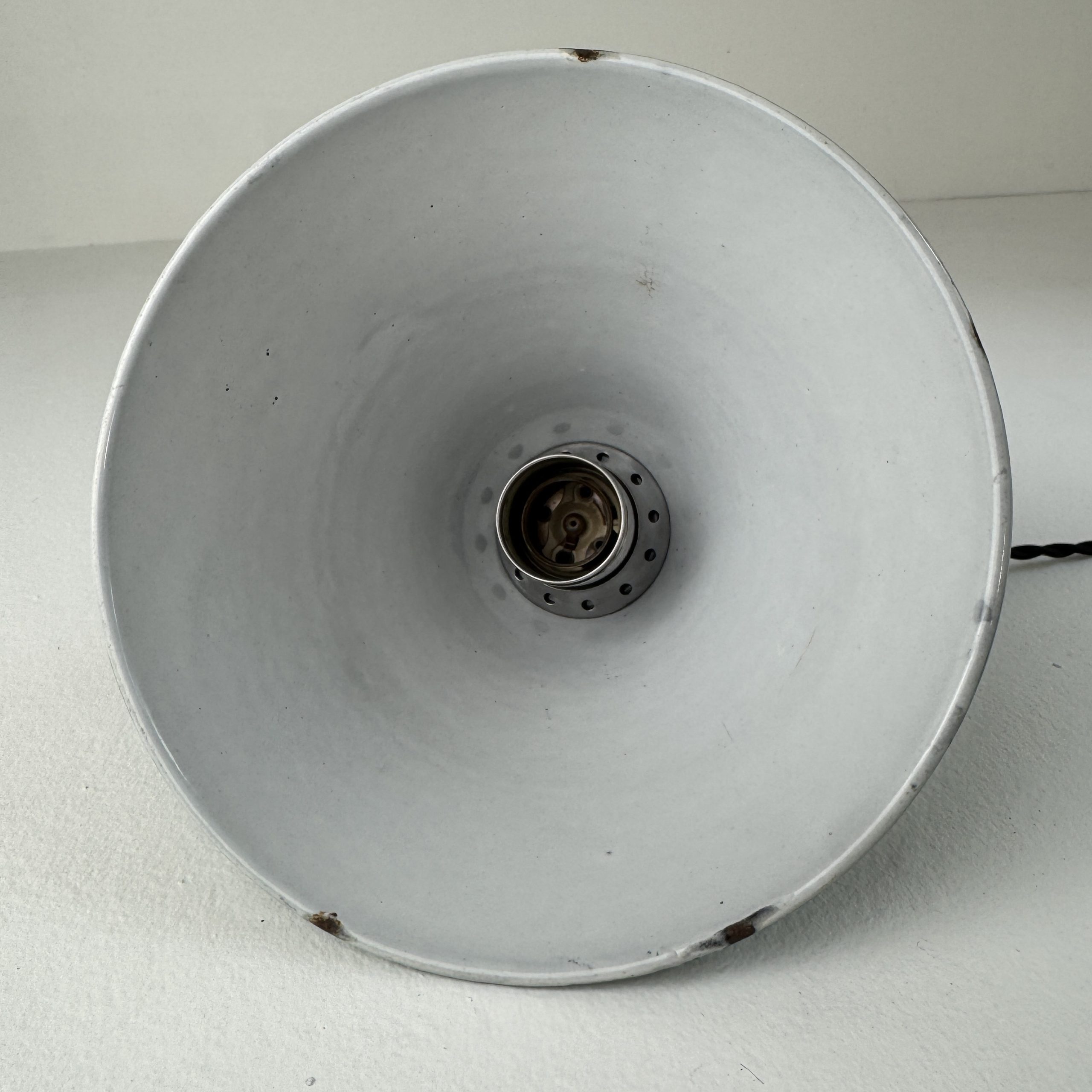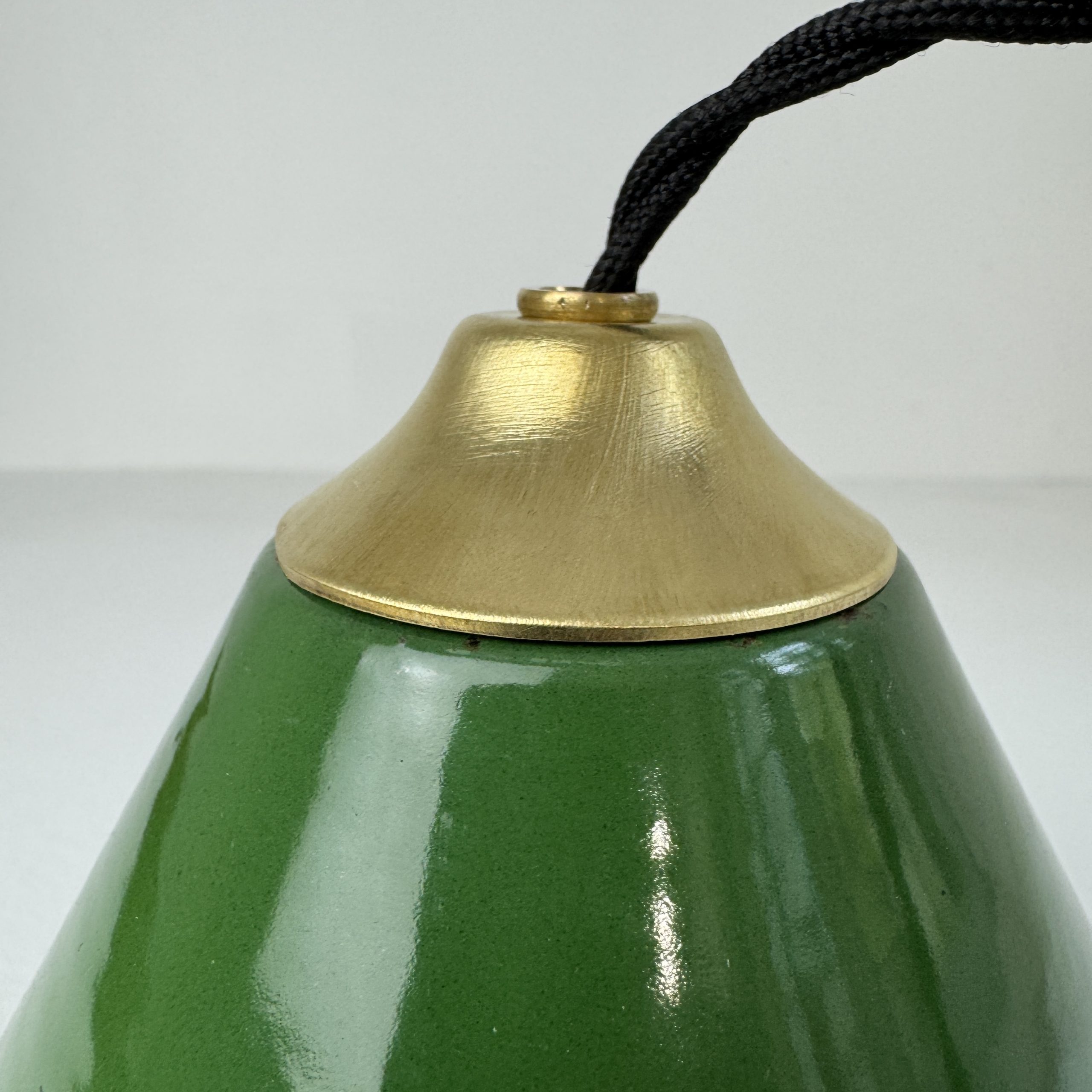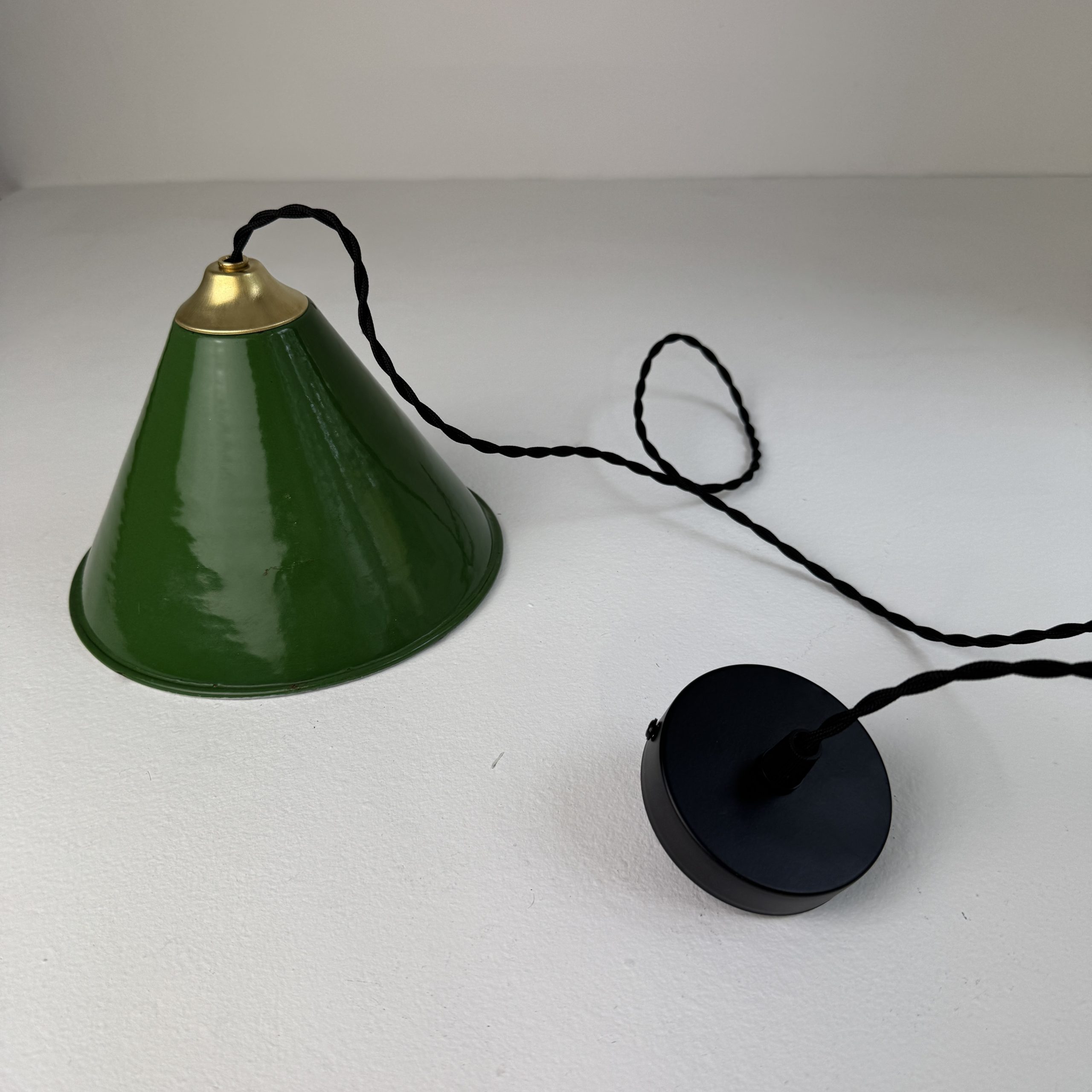 Ancienne suspension d’usine en tôle émaillée verte. En bel état général.