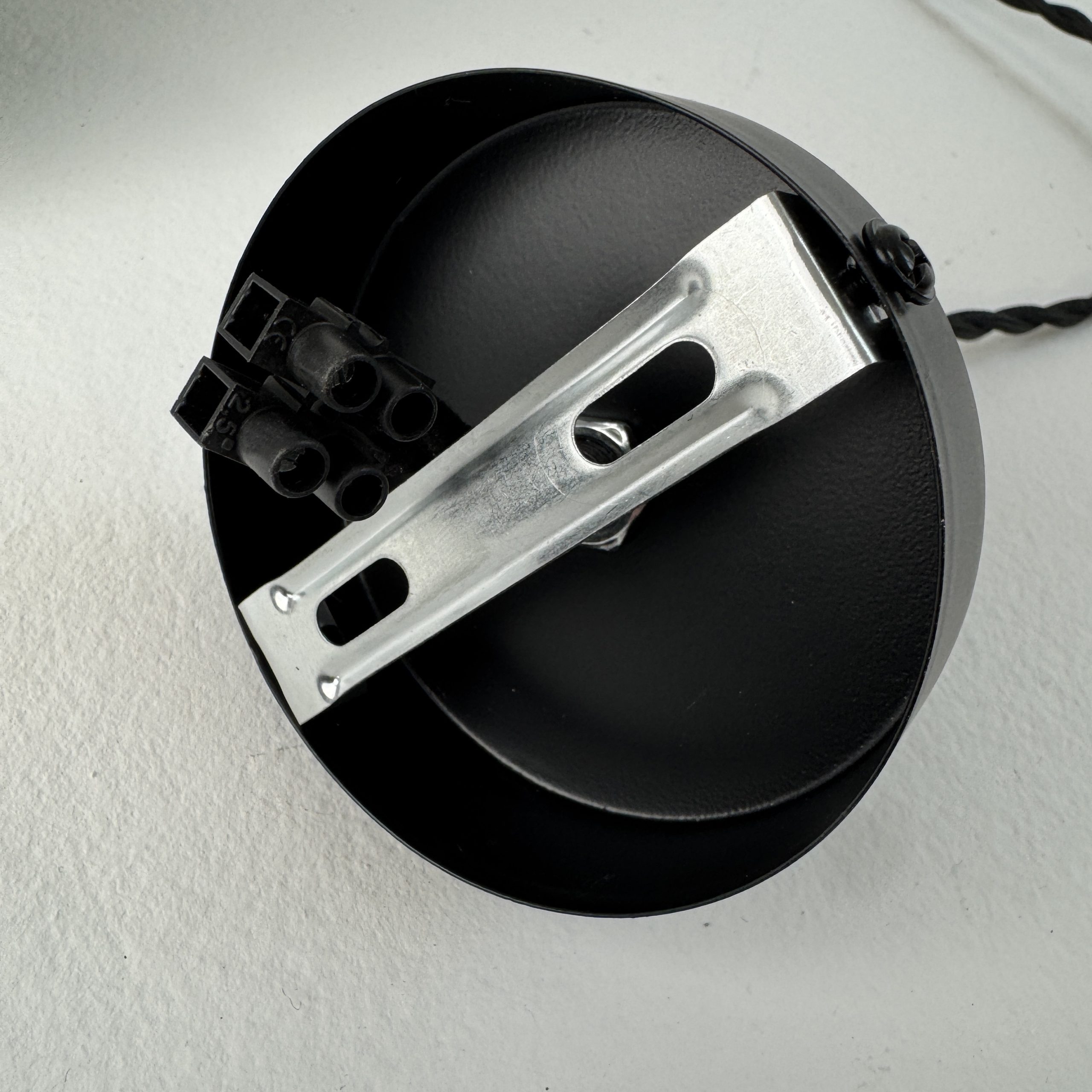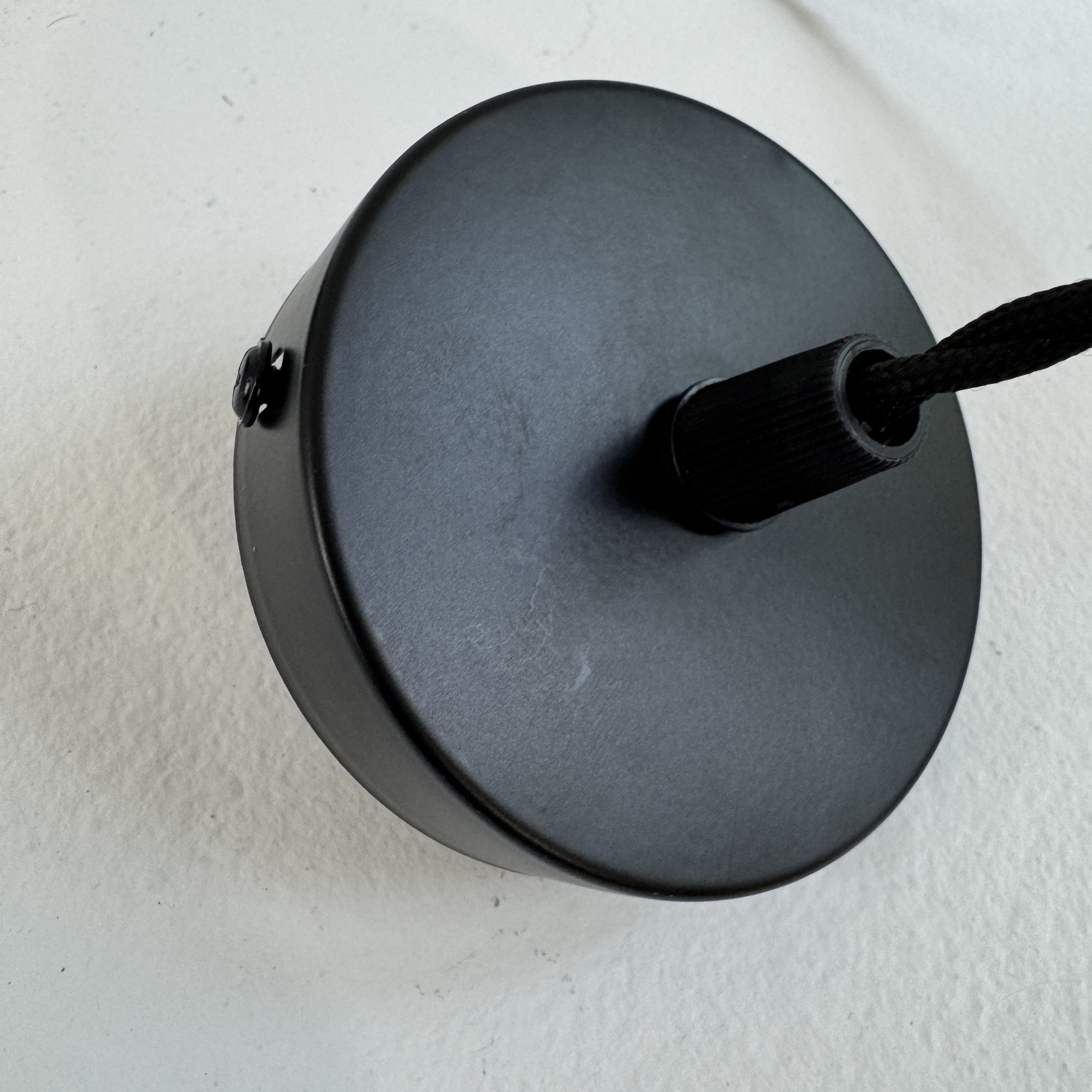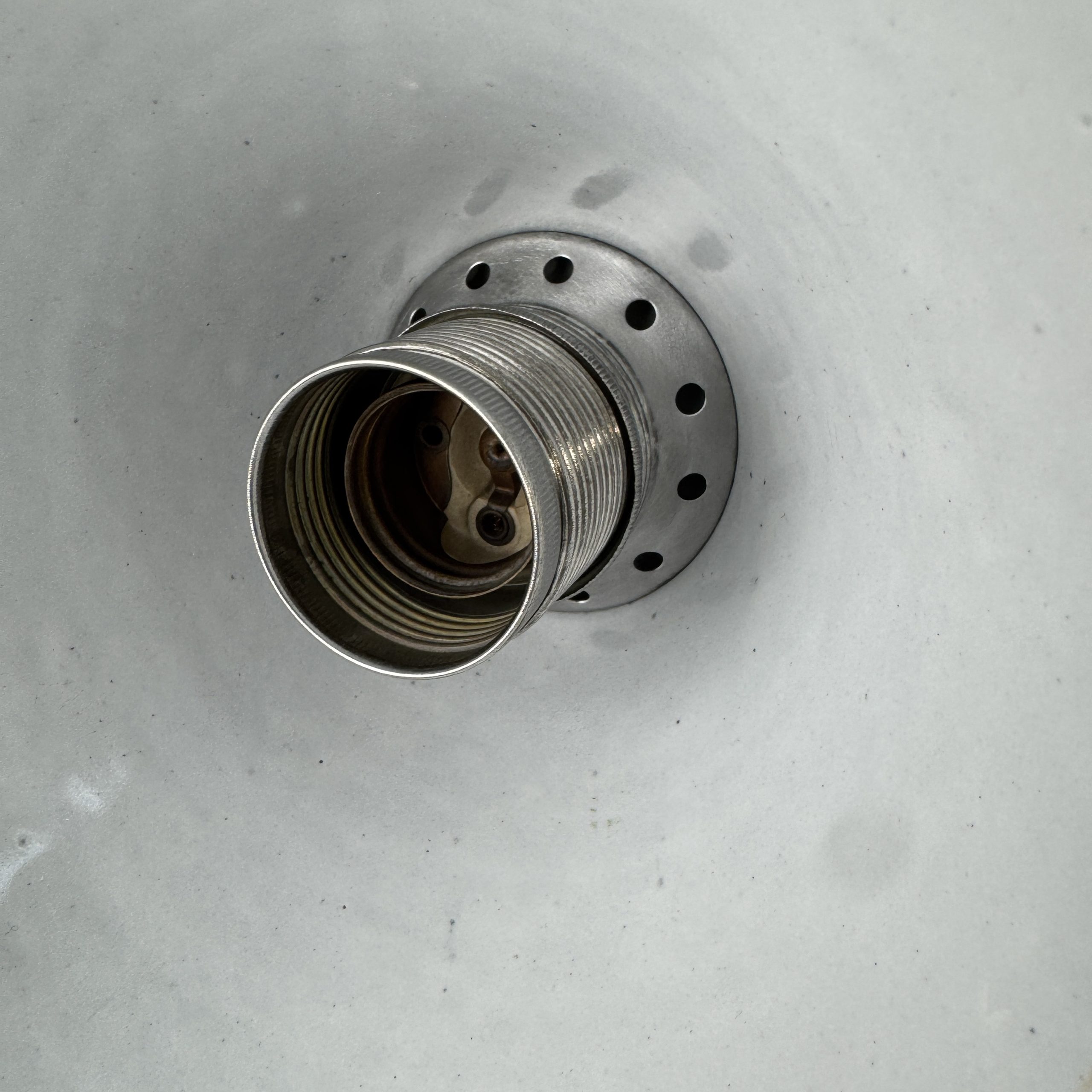 L’électricité a été refaite à neuf avec fil noir en tissu torsadé.  Douille à vis gros culot (E27). Branchement par domino.