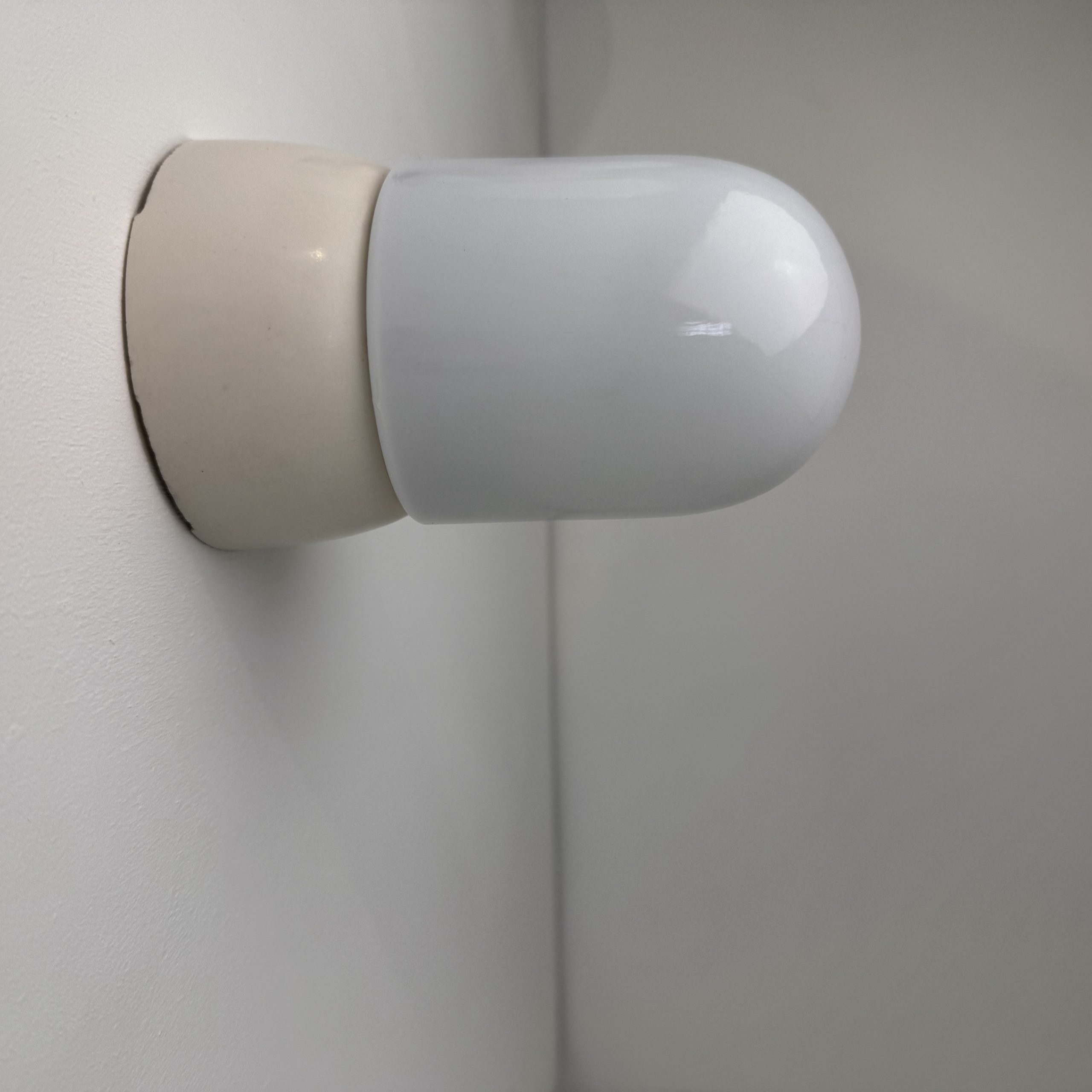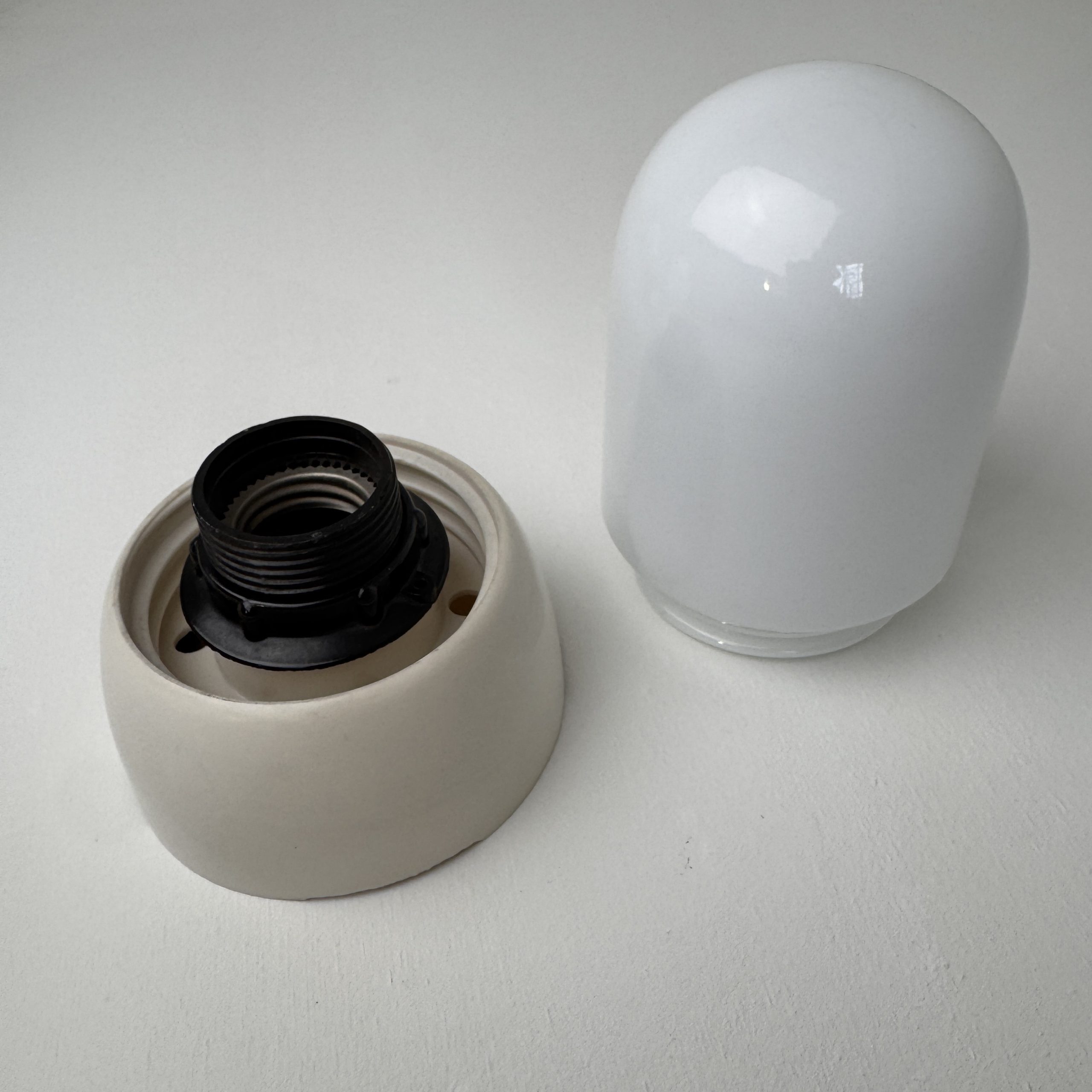 Electricité refaite. Branchement par domino. Douille à vis gros culot en bakélite (ampoule E27)
